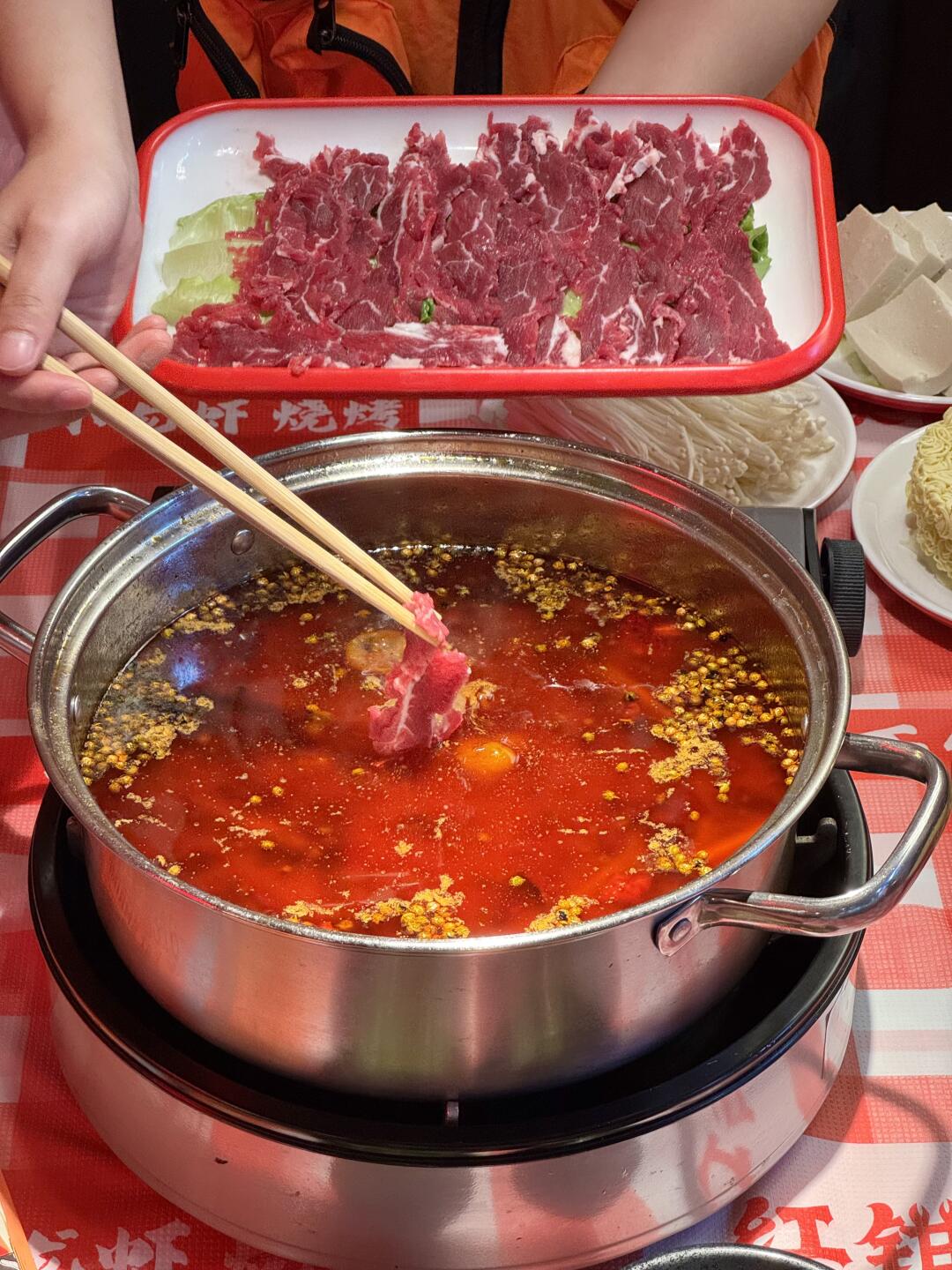 我选的香辣锅底🌶️上桌就闻到了锅底的香味🤤