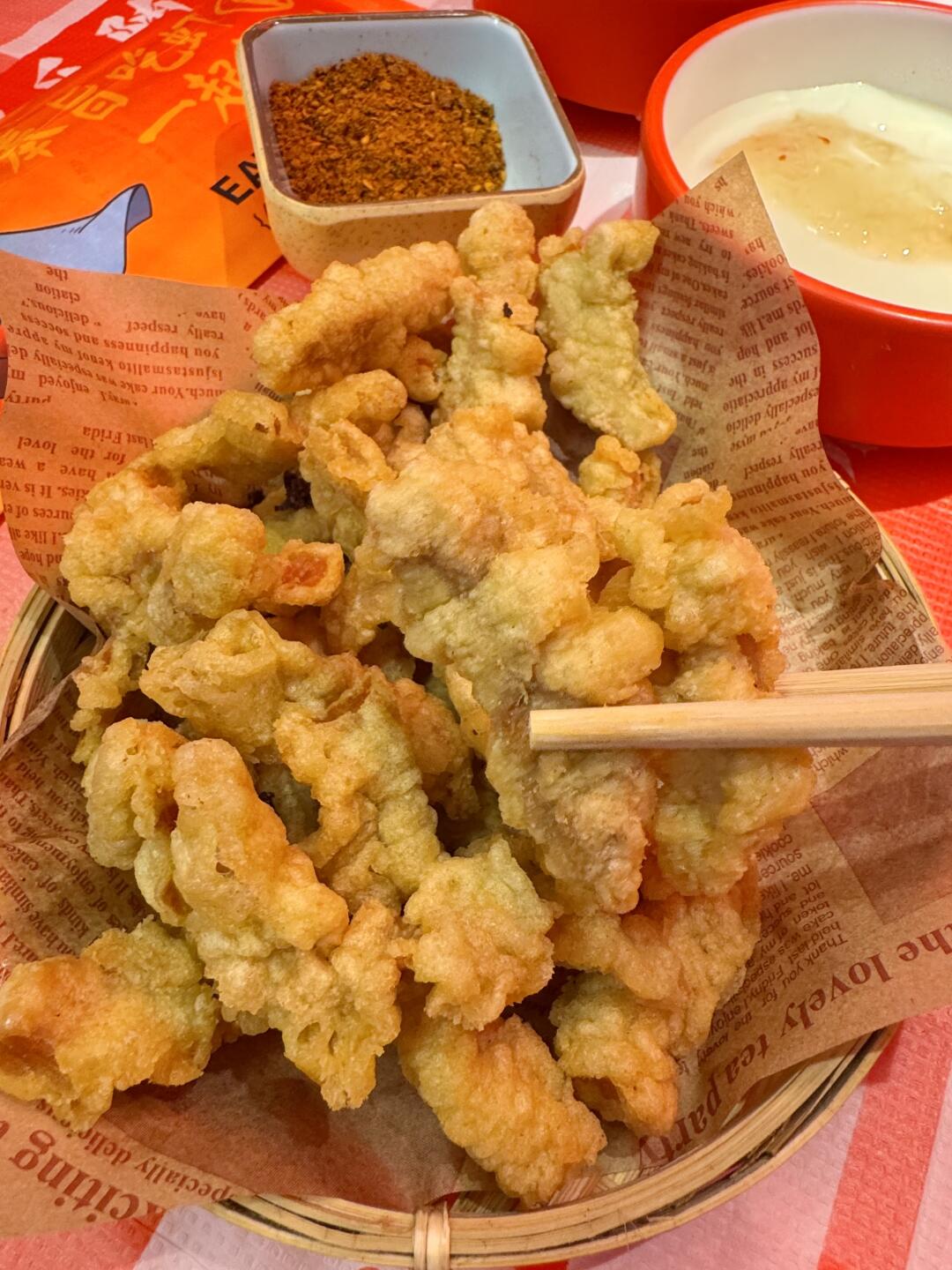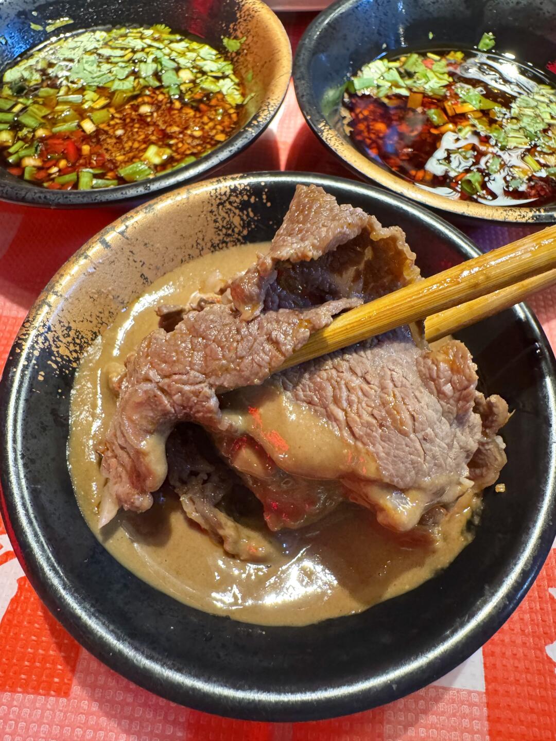 还有肥瘦适中的鲜切吊龙 🐂 蘸点芝麻酱zei香!现炸的小酥肉每根都很酥脆 记得趁热吃!