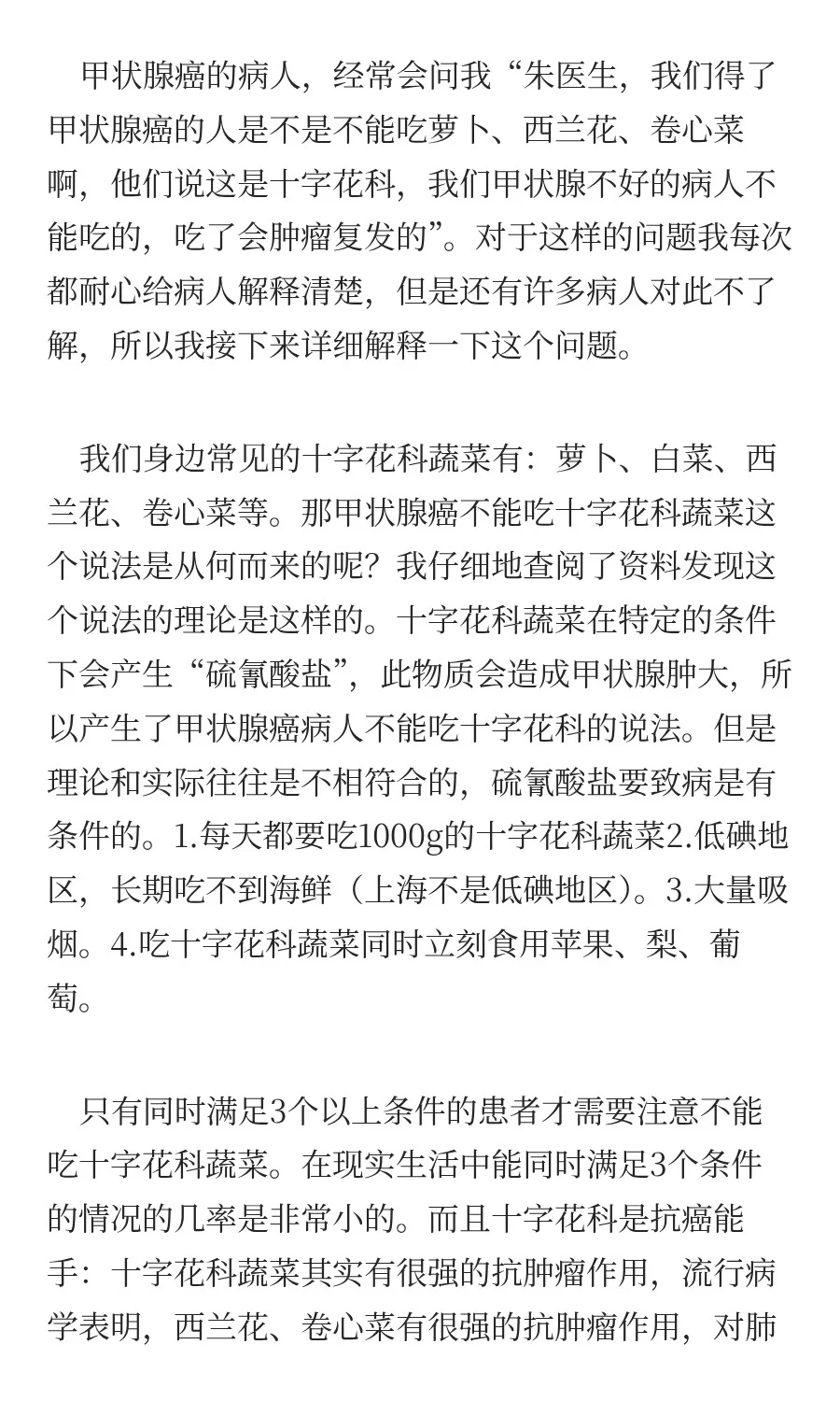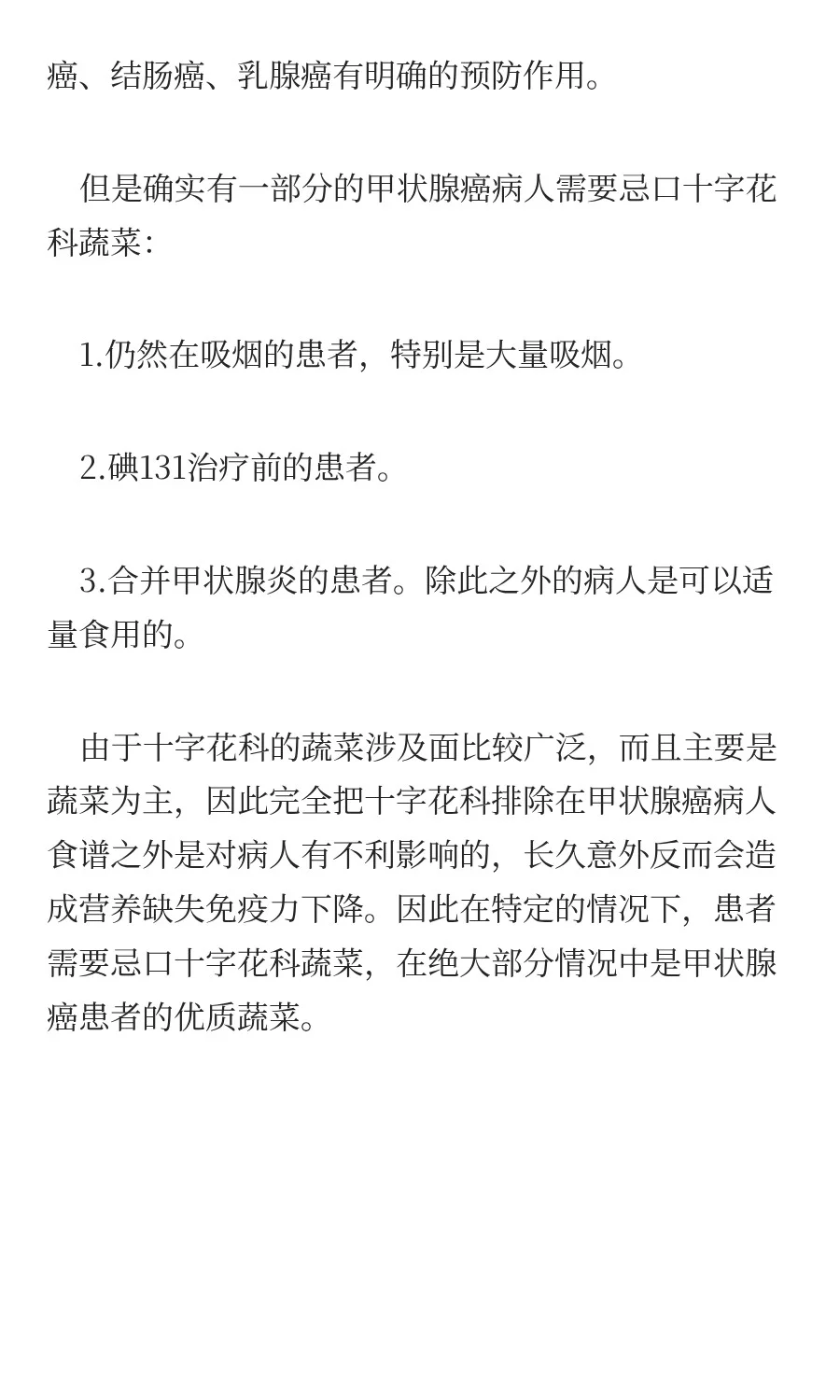 甲状腺癌到底能不能吃十字花科的蔬菜?