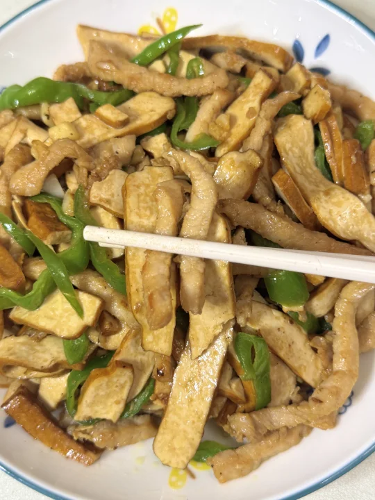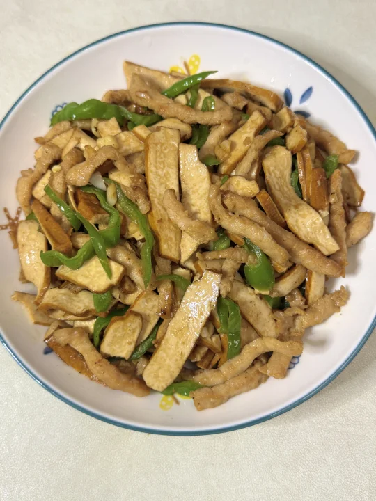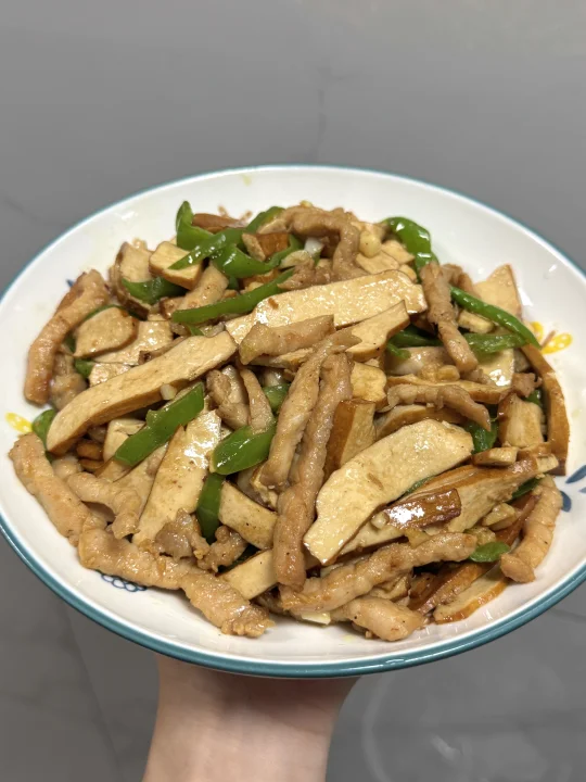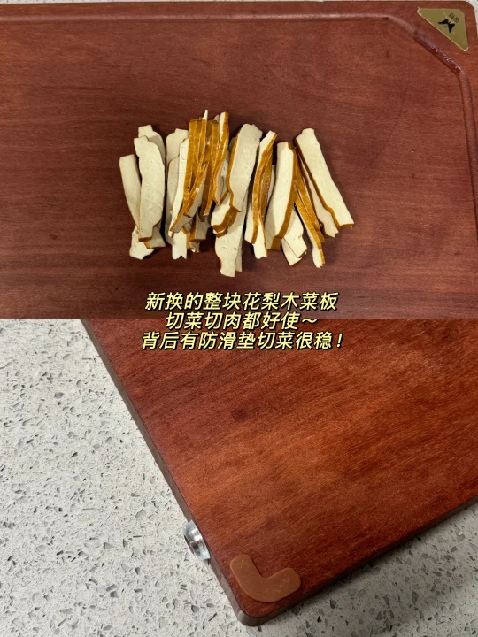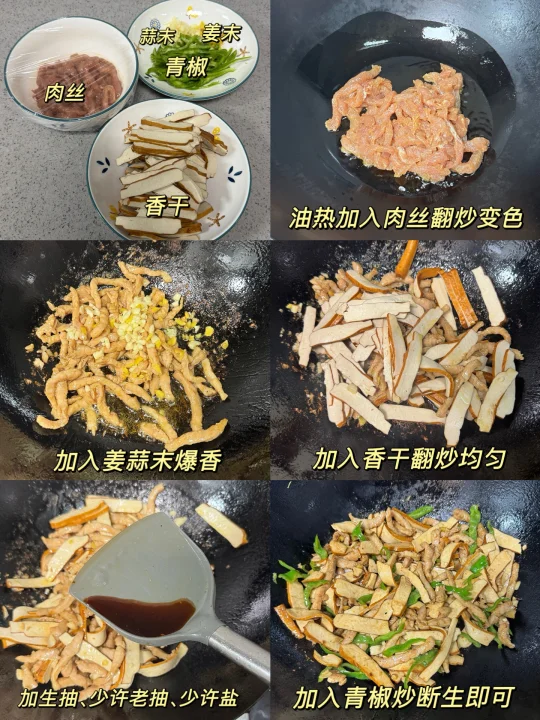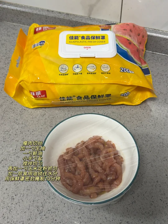 [彩虹R][彩虹R]姐妹们,我家一周吃八次的香干炒肉丝来了!超级好吃又下饭~[派对R][派对R]做法也巨简单,快来试试吧~ 食材:瘦肉、香干、青椒、姜末、姜末 做法: 1️⃣瘦肉切丝,加一勺生抽、一勺蚝油、小半勺盐搅拌均匀,再加入一勺玉米淀粉抓匀,加一勺食用油锁住水分,用保鲜罩密封腌制10分钟 2️⃣锅中油热加瘦肉炒至变色,再加入姜蒜末爆香 3️⃣倒入香干翻炒均匀,加一勺生抽、半勺老抽、小半勺盐翻炒均匀 4️⃣加入青椒炒至断生捞出 [星R]做法超级简单又下饭的香干炒肉就完成啦!终于换了家里发霉的菜板,换成双枪花梨木菜板用着也太安心了!它是一整块木,不易开裂也不用担心发霉,而且还能抗菌,背后还有防滑垫,切菜剁肉都很放心~ 在闺蜜家种草了佳能的食品级保鲜罩,还是翻盖设计随用随取,松紧大小,能适用各种大小的碗盘尺寸,还是食品级材质,接触食物很放心,一包有两百多个,量很大,可以用很久了~ 这些都是在JD买的~现在上JD🔍“厨具怪好用666”进入厨具活动会场,里面的厨具神器1元起、爆款5折起、还有一件85折优惠叠上叠!有需要买厨具的朋友可以去看看哦!