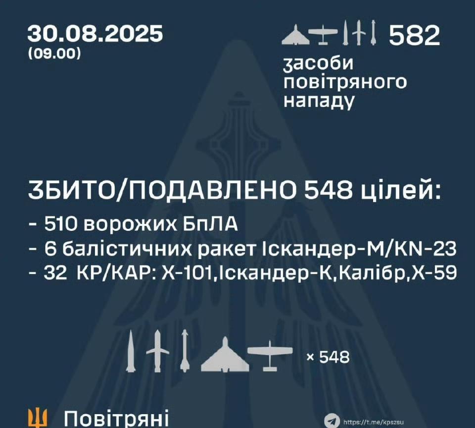 俄军连续大规模空袭!从8月29日晚到8月30日凌晨,俄军共投掷582发导弹和自杀无人机。另外今天一早,俄军又对乌克兰部分地区,进行重点打击。而早先的28日,刚刚打完一波,使用武器高达629发。 在29日-30日这波突击中,俄陆军发射8枚“伊斯坎德尔-M”。俄空天军动用1架图-160、2架图-95MS战略轰炸机,发射20枚Kh-101巡航导弹。另有9发海军舰艇打出的“口径”、空天军战术航空兵的Kh-59导弹。乌克兰自称,境内有7处地点命中,分布于第聂伯罗、扎波罗热、捷尔诺波尔、日托米尔、卢茨克等州。当然实际上不止这些。日托米尔州的奥泽尔内空军基地、第聂伯罗彼得罗夫斯克的南方机械制造厂、巴甫洛格勒的化工厂),扎波罗热市的马达西奇工厂,被曝命中。 今天早上,俄军约50架"天竺葵"自杀无人机,袭击了敖德萨州乔尔诺莫斯克港。该港吞吐量不及乌克兰敖德萨港。但后者由于经常有英国等国援助,被俄军3年多来反复打击。