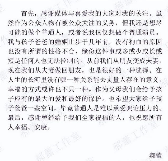 新京报:郝蕾宣布早于几年前就已离婚,没有狗血没有性格不合