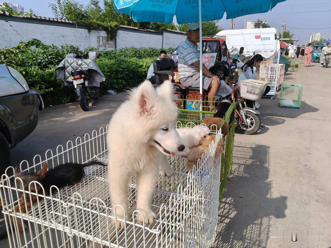 山东潍坊高密狗市大集,胶东地区规模颇大的狗市,逢五排十,位于高密市区东部人民大街东首黄山茔,不止有各种各样的狗猫等宠物,还有各种花鸟鱼虫等等,来自青岛,潍坊等周边乃至全国的狗贩及爱狗人士齐聚,很是热闹!高密狗市 高密 山东