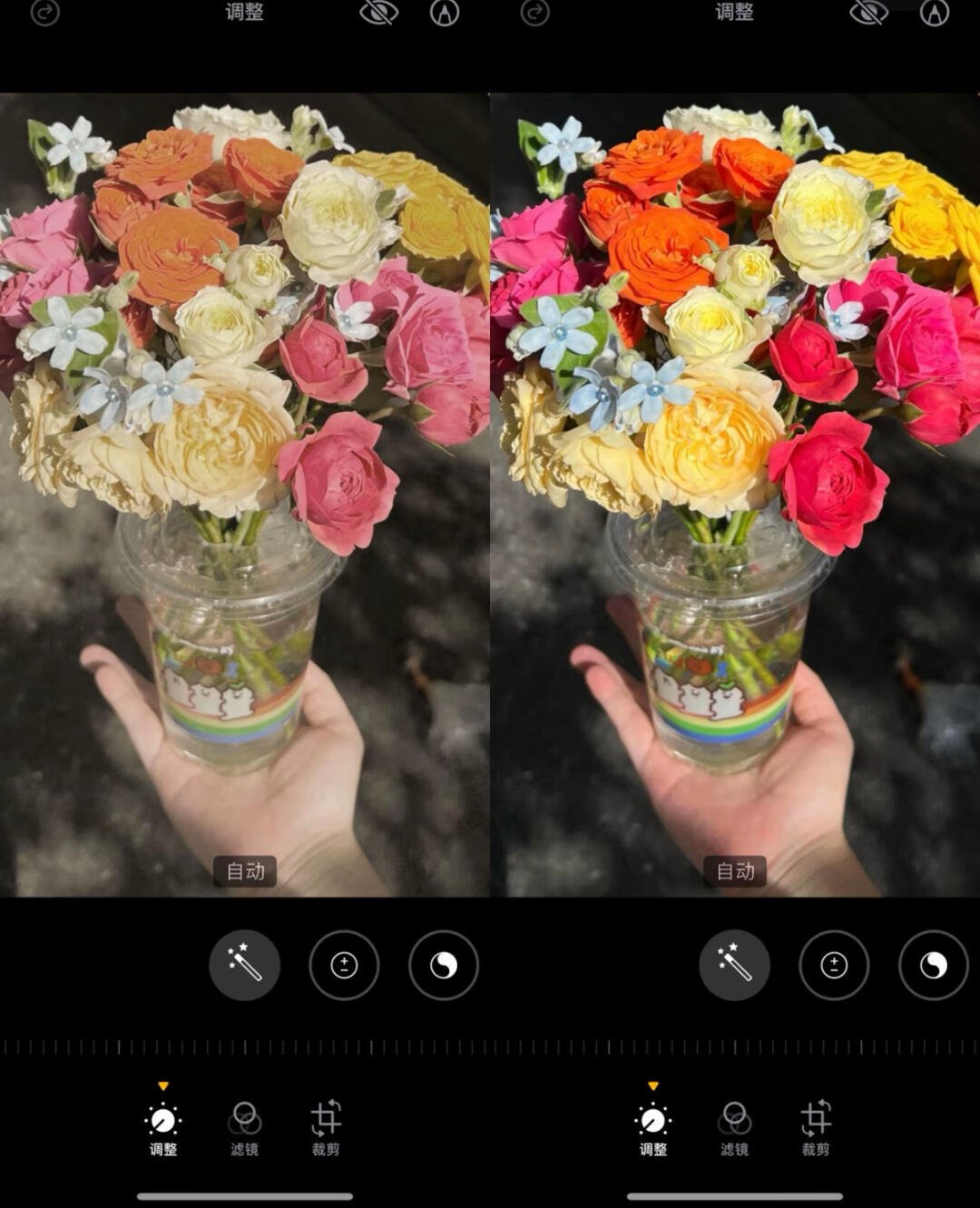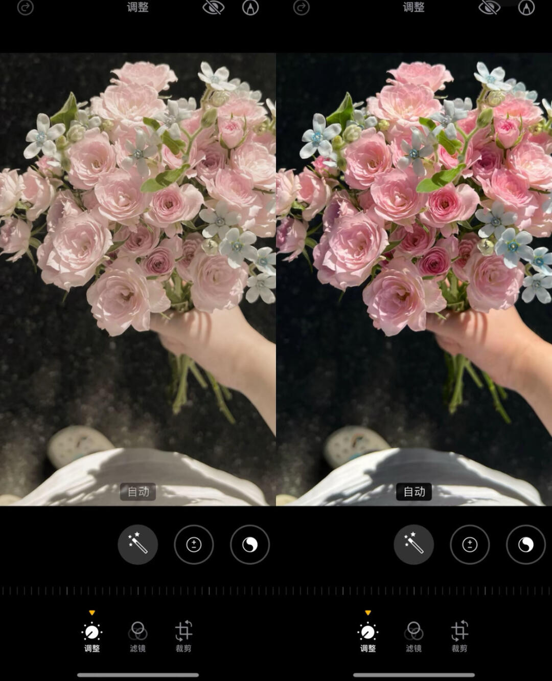 收到的花花拍的不出片!来试试这个鲜花调色吧!真的好好看!快来试试吧 亮度50 对比度20 饱和度30 自然饱和度30 高光20 色温-30 阴影-30 亮度返回0