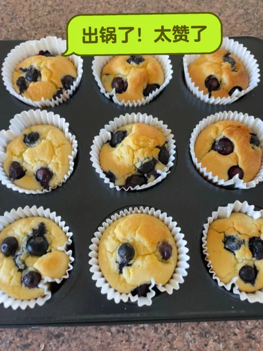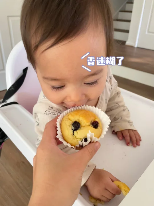 又来分享宝宝超爱吃的健康小点心啦~这次是爆浆蓝莓玛芬!无糖版,松松软软自带甜香,宝宝一口气啃俩😋
