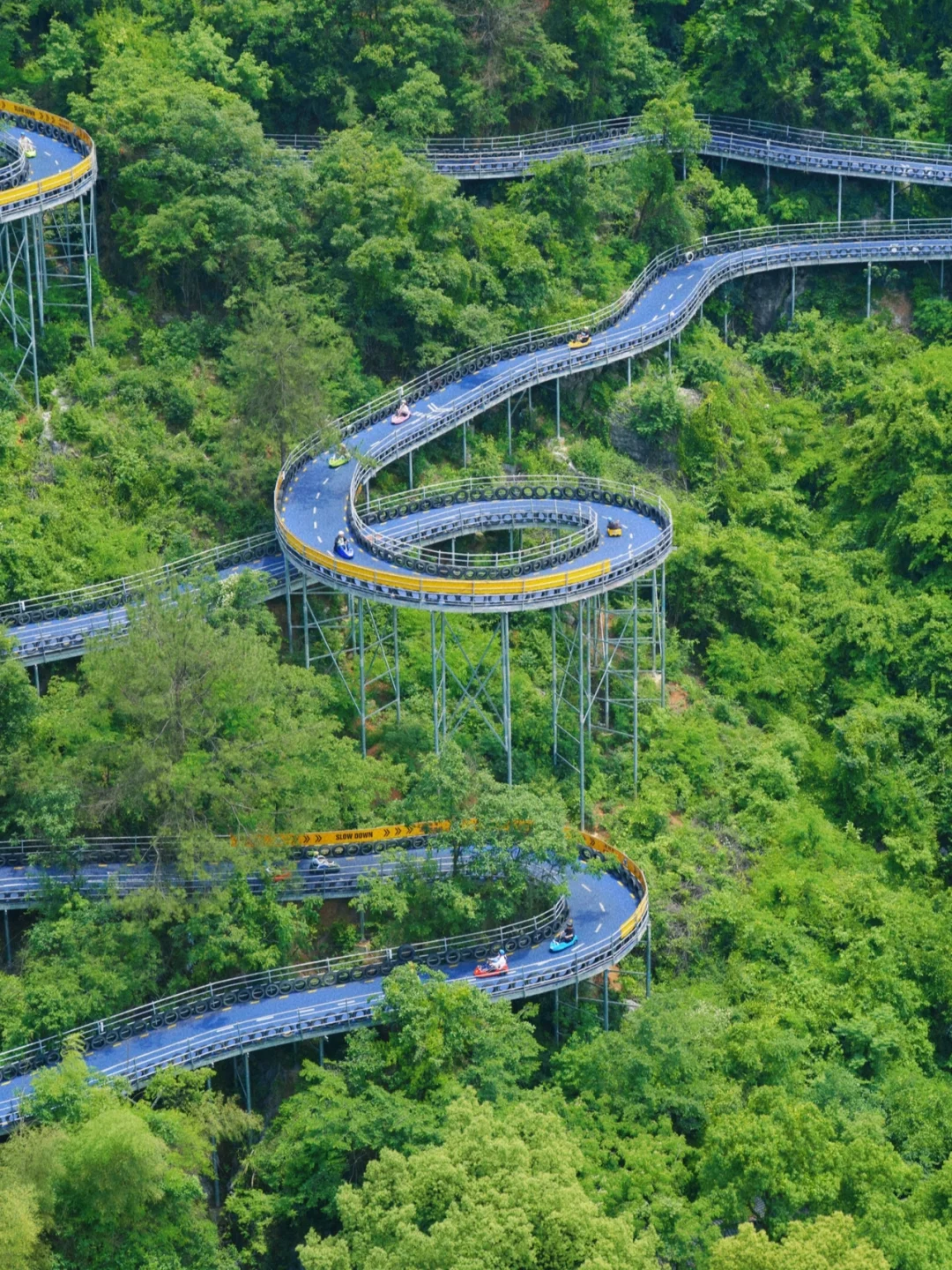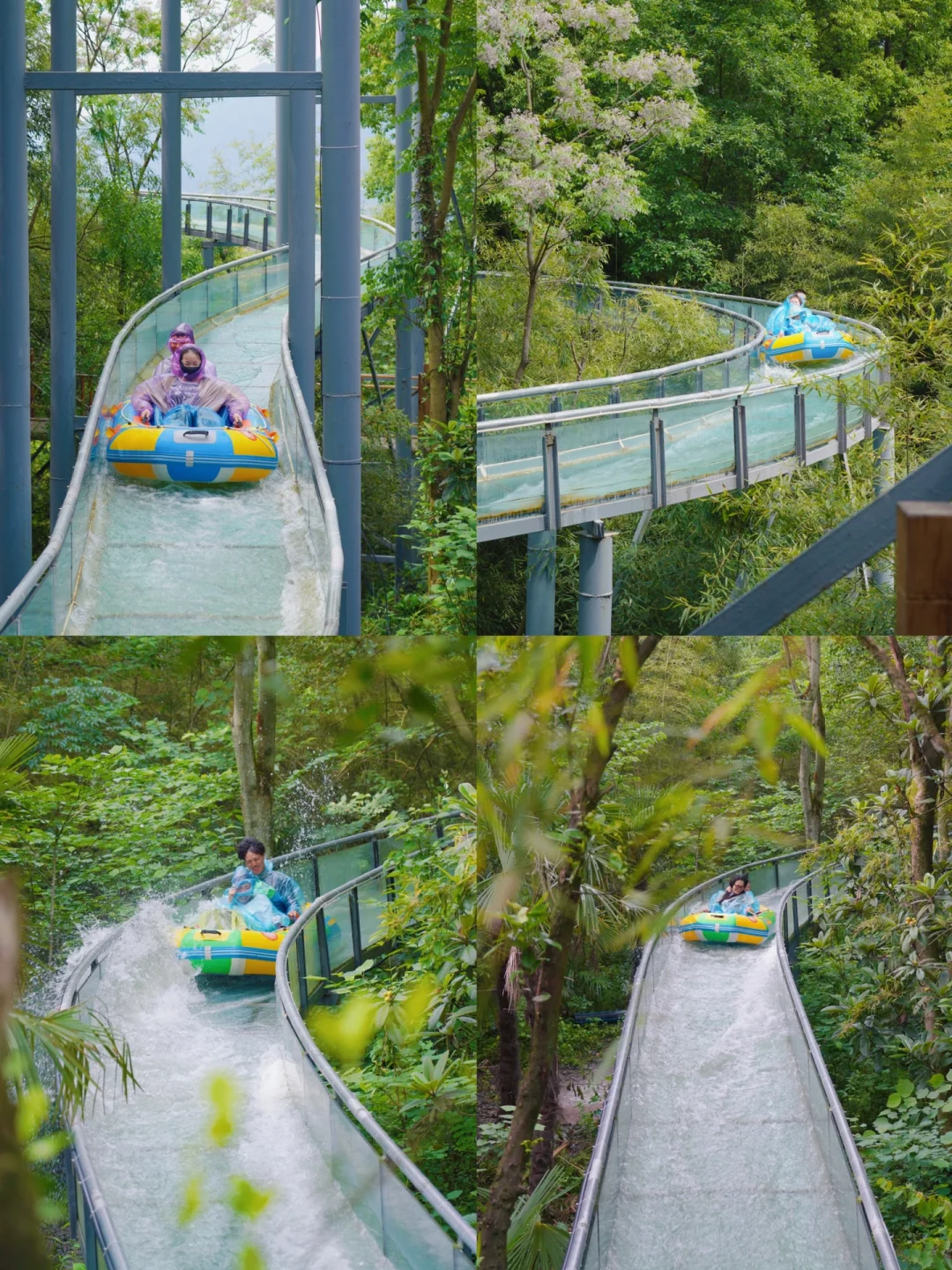 高空玻璃水滑道,坐着皮划艇穿梭森林,水花四溅,超刺激🤣