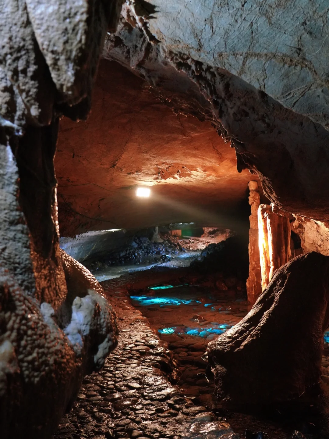 第一次体验溶洞探险,堪比电影《盗墓笔记》里的地下河场景,见识到了各种石柱、石钟乳和石笋,洞内全年恒温18℃,超级凉快!