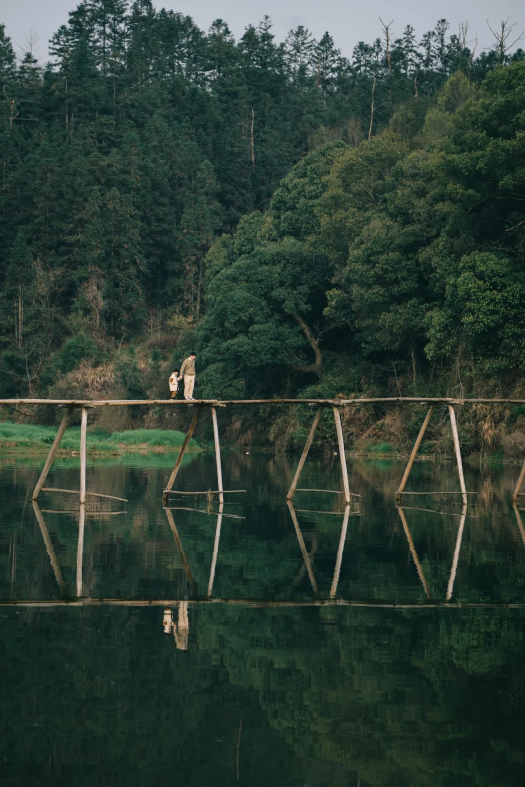 漳村离婺源县城很近,算是这些村庄中交通最方便的,漳村有座著名的板凳桥在枯水期架桥方便村民行走。每逢四五月间,漳溪河水急涨,会冲垮板凳桥,到了下半年的九十月间进入枯水期时,村民会重新搭建。十一期间板凳桥应该已经搭好啦。