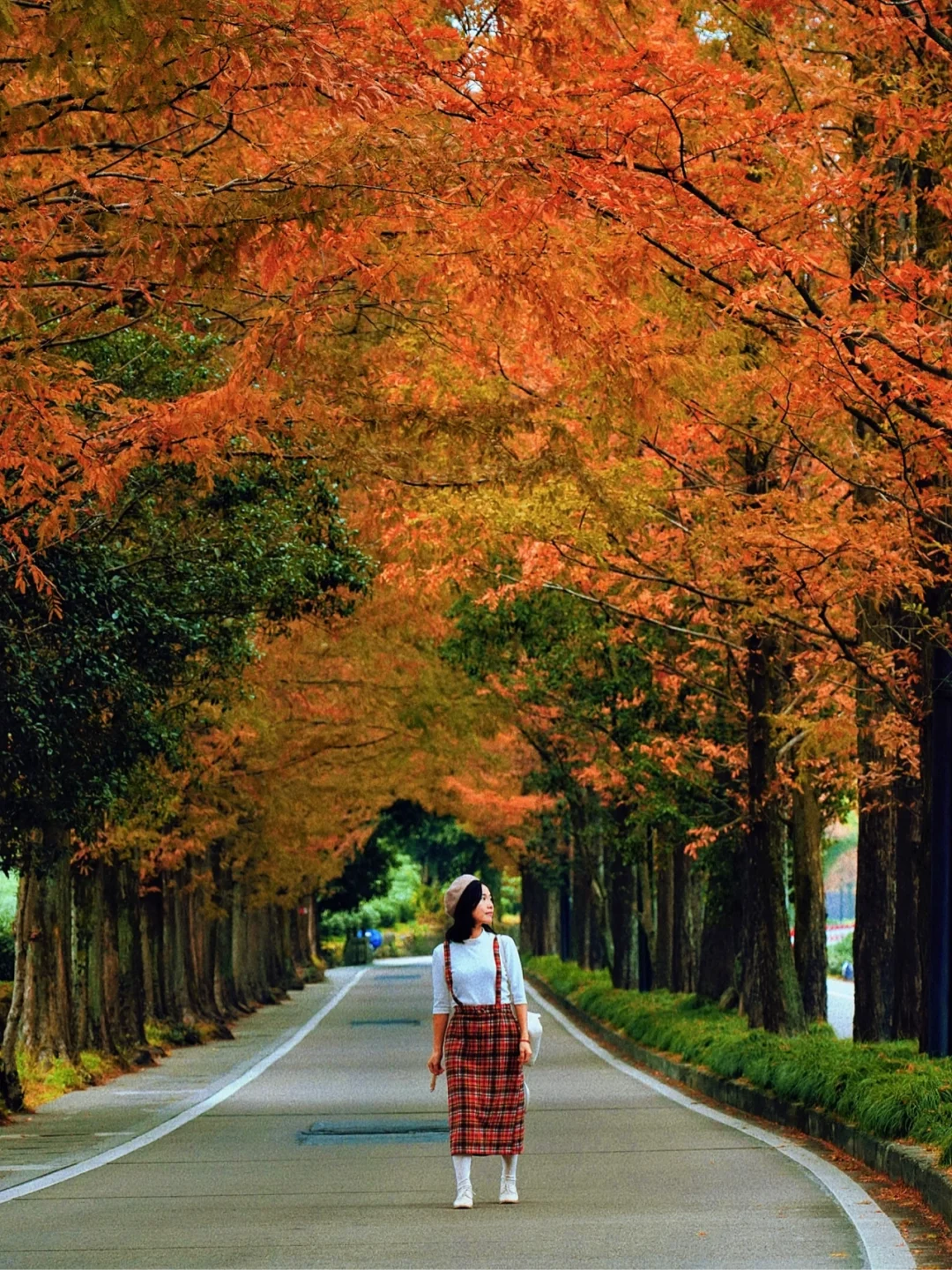 杭州秋意最浓的地方之一,道路两旁种满了水杉,焦糖色水杉和茶园构成了一副美丽的画卷🖼️