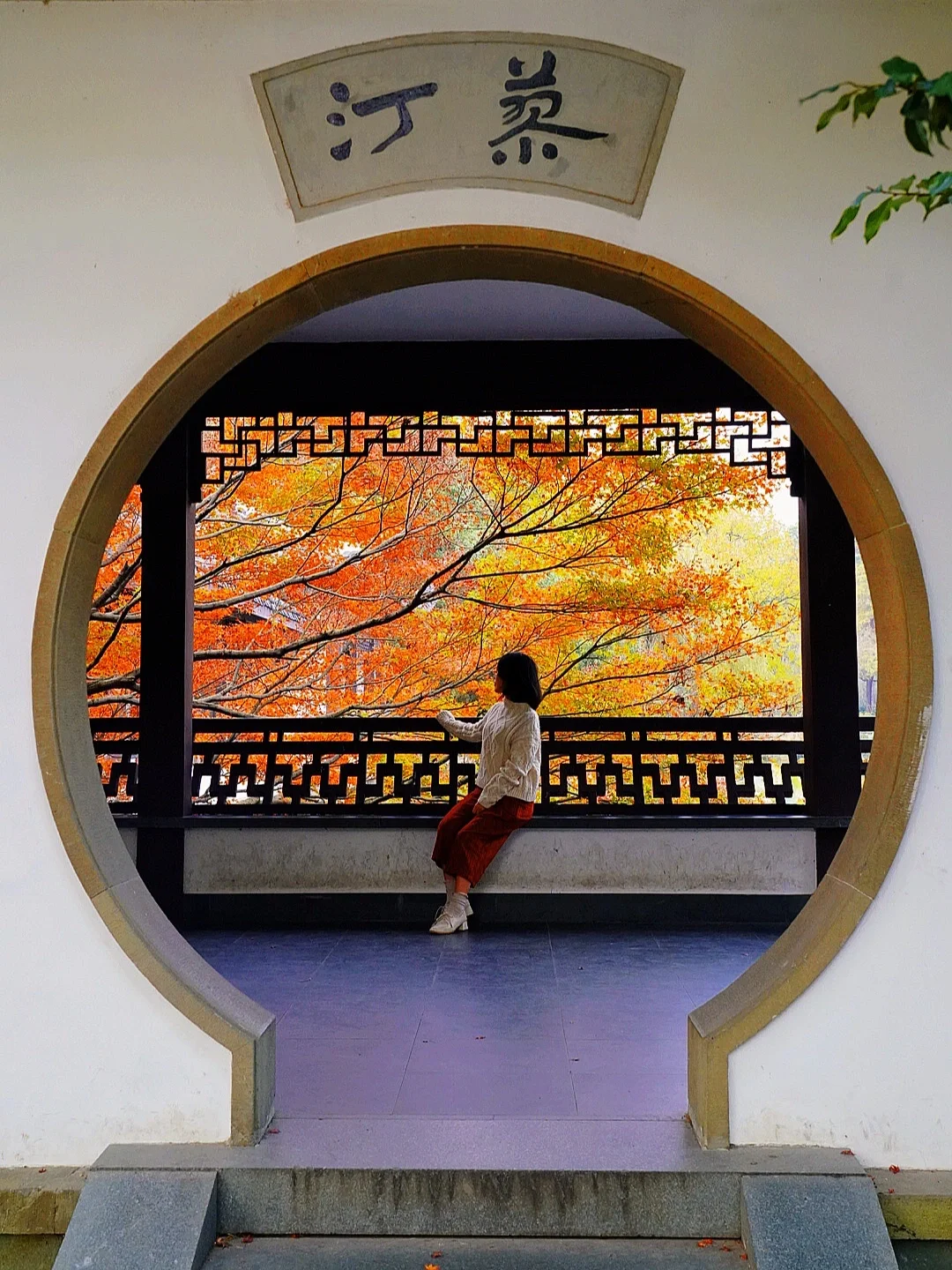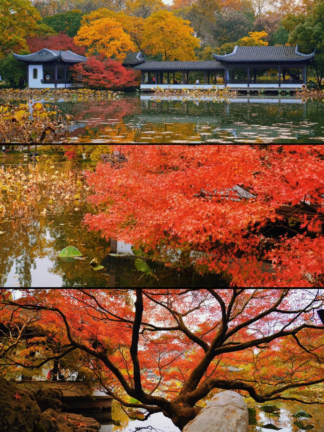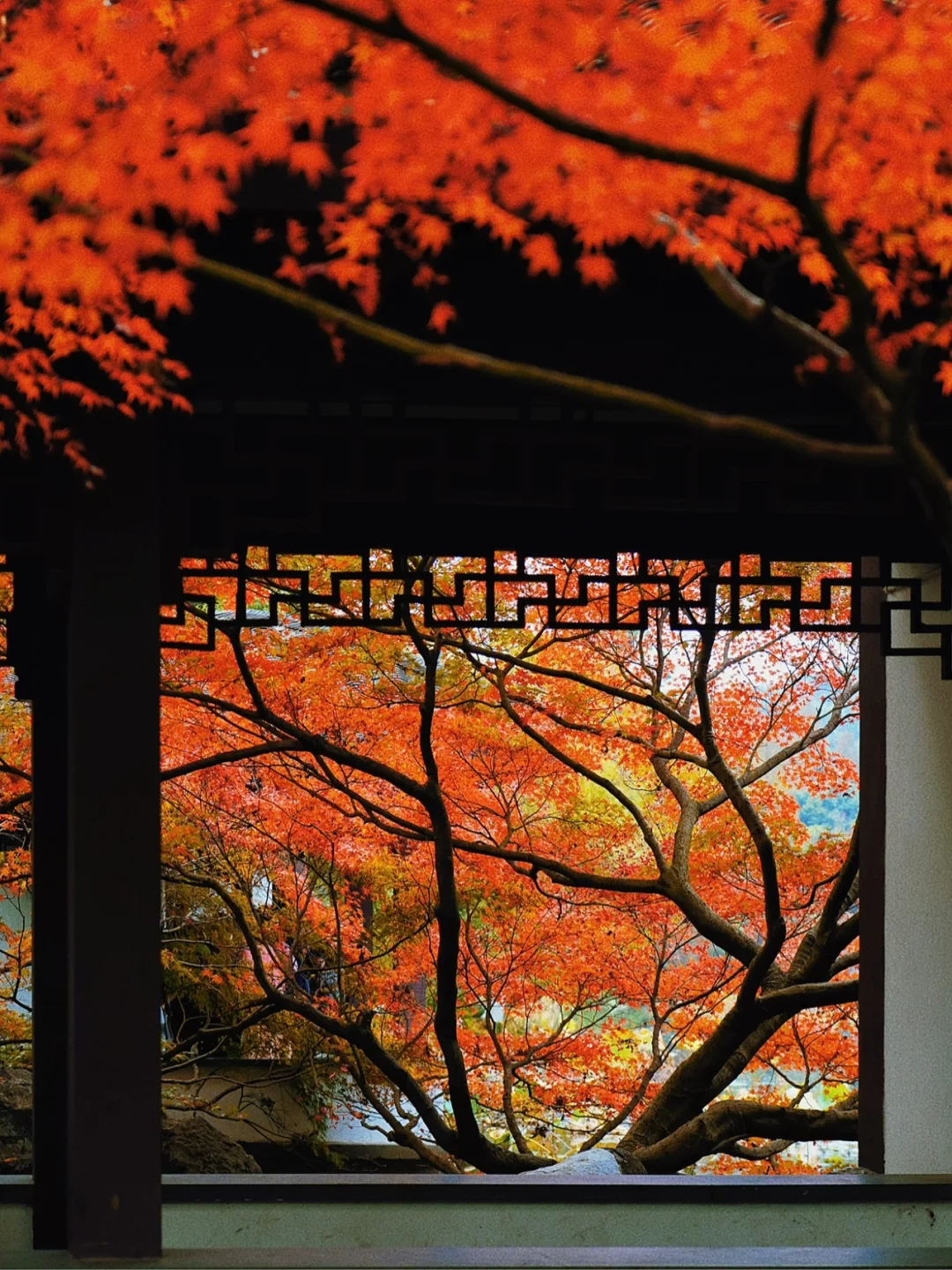 杭州赏枫NO.1,最具江南园林韵味,红色的枫叶
