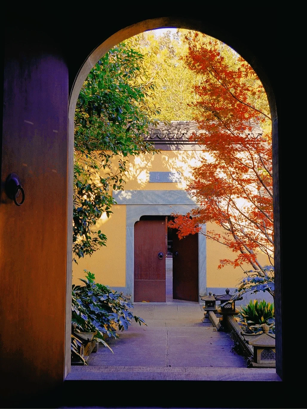 西湖边的宋风寺庙,低调僻静的宝藏地,黄色的寺庙和红色枫叶绝搭!
