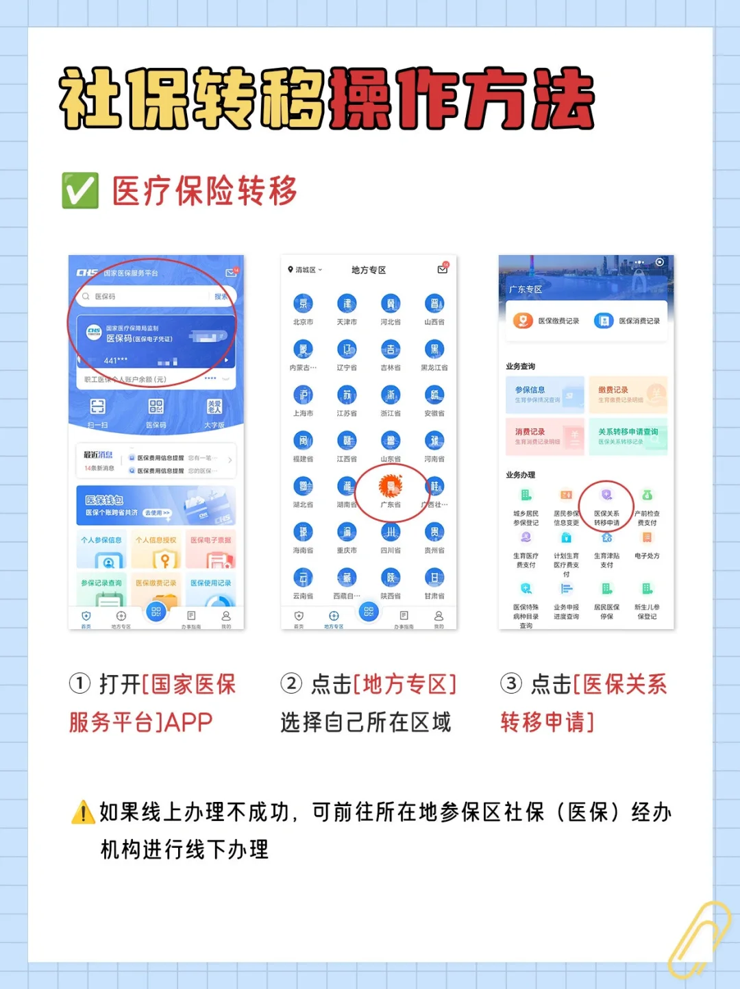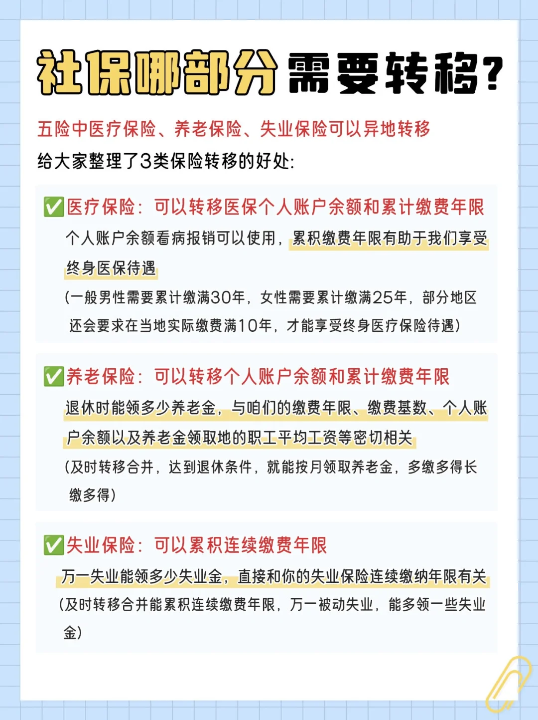 ✅ 医疗保险:可以转移医保个人账户余额和累计缴费年限