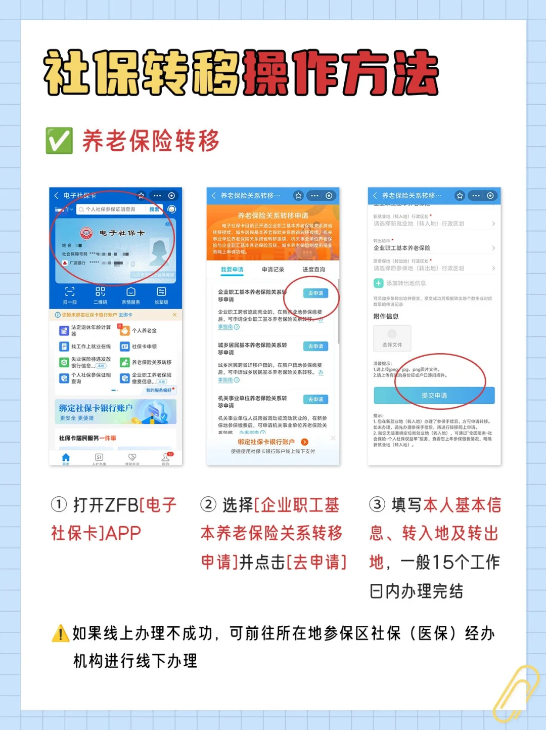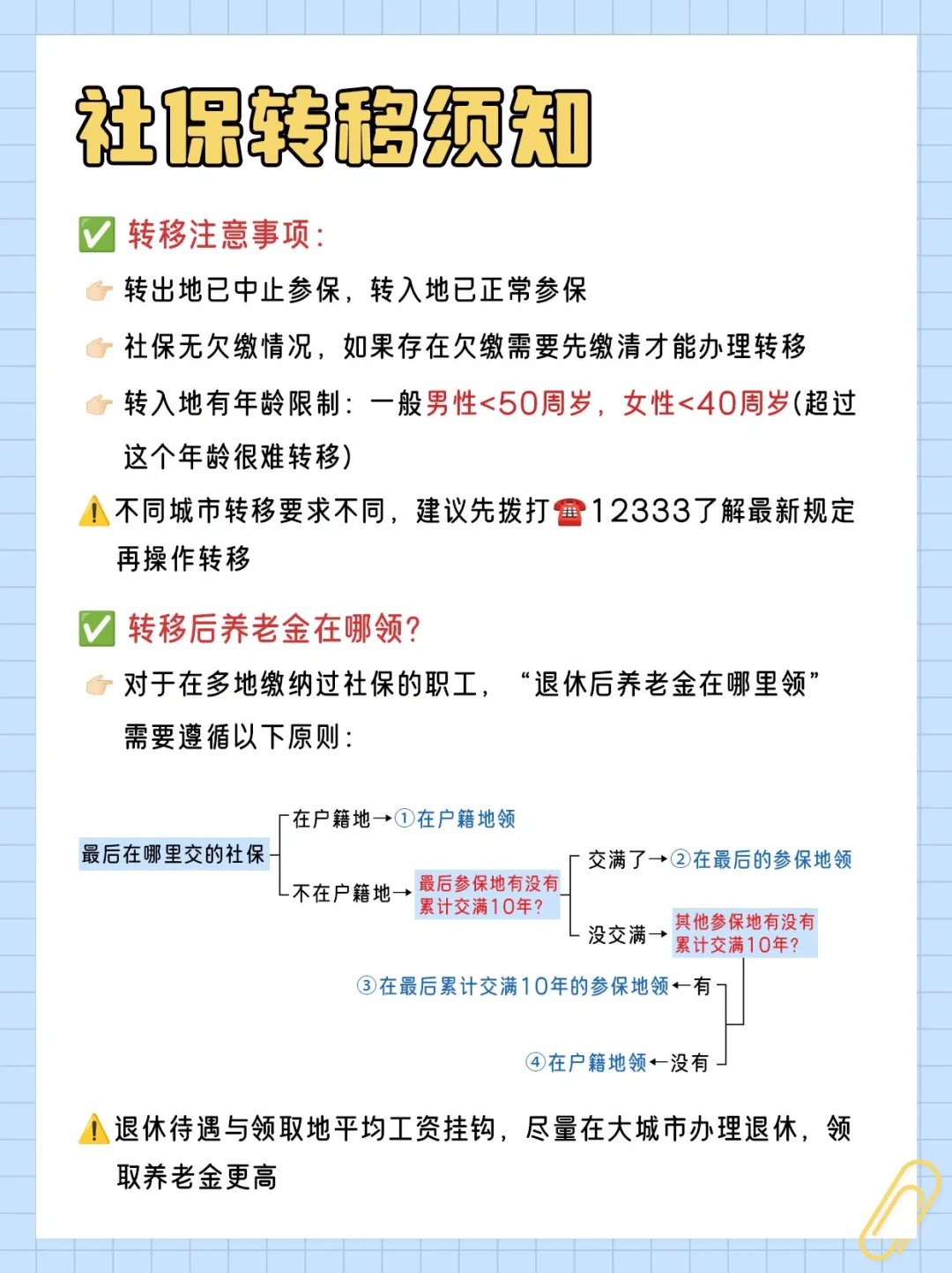 ✅ 养老保险:可以转移个人账户余额和累计缴费年限