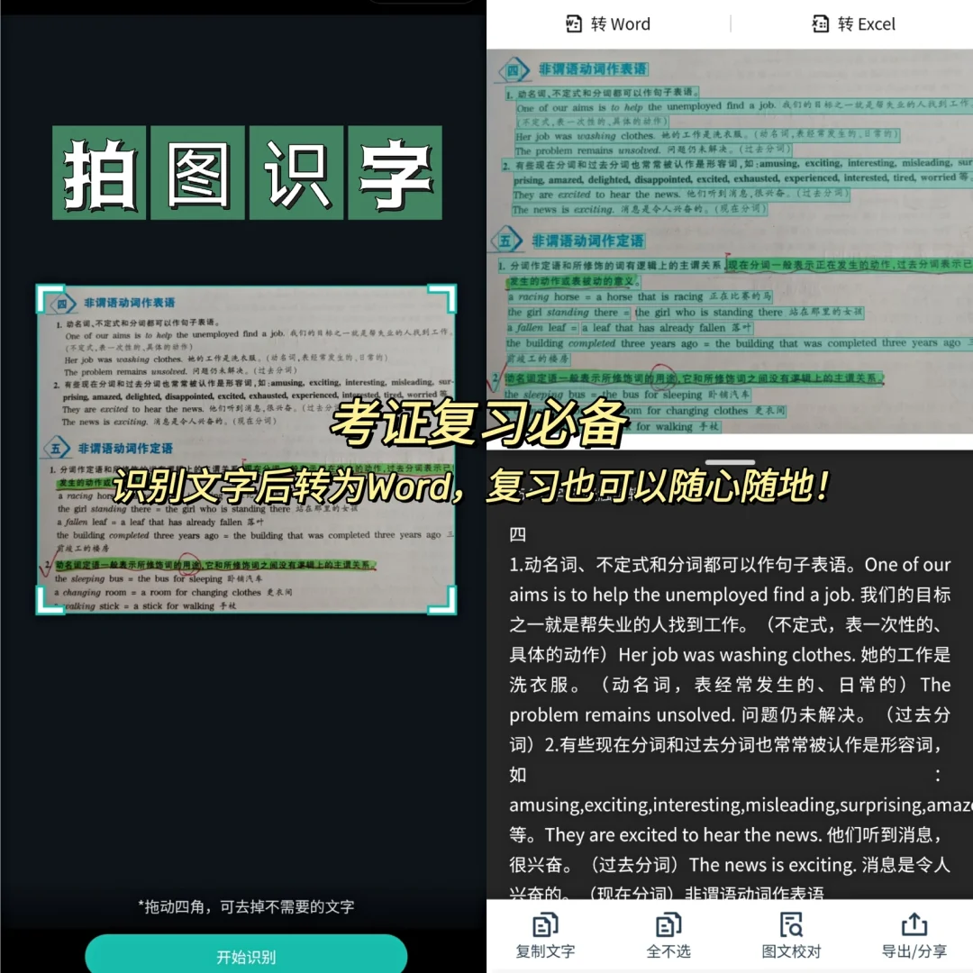拍照/上传资料后,可以把文字识别出来,对于要考证的姐妹👭来说,提纲可以随时随地看!识别的准确率高,很实用。