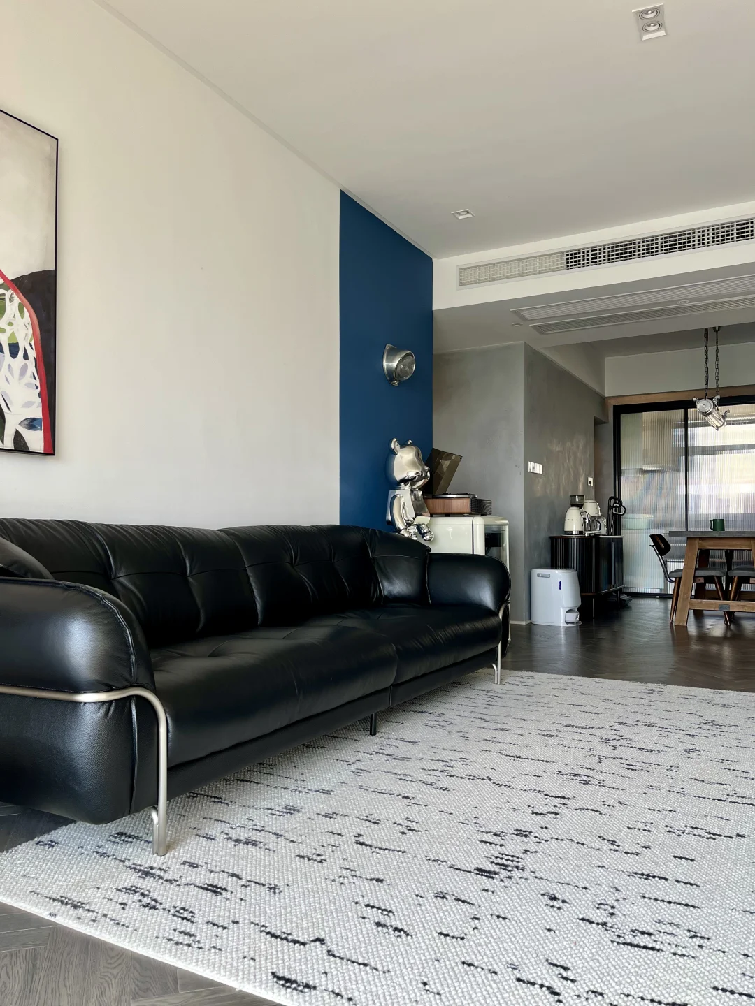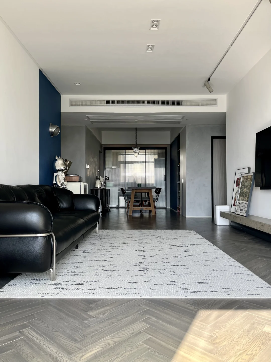 因为是小户型,客餐厅并没有选择瓷砖,而是人字拼木地板通铺,让客厅与餐厅和卧室等其他空间看起来没有割裂感和边界感,整体更清爽统一。