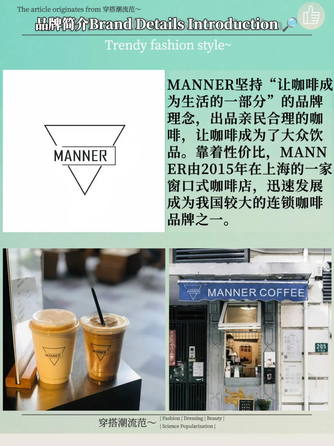 MANNER坚持“让咖啡成为生活的一部分”的品牌理念,出品亲民合理的咖啡,让咖啡成为了大众饮品。靠着性价比,MANNER由2015年在上海的一家窗口式咖啡店,迅速发展成为我国较大的连锁咖啡品牌之一。
