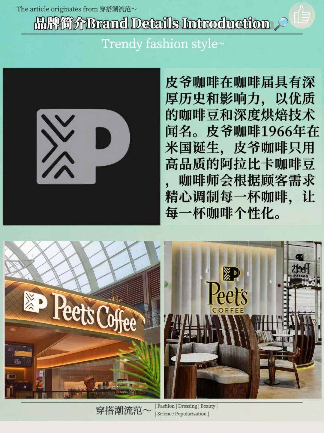 皮爷咖啡在咖啡届具有深厚历史和影响力,以优质的咖啡豆和深度烘焙技术闻名。皮爷咖啡1966年在米国诞生,皮爷咖啡只用高品质的阿拉比卡咖啡豆,咖啡师会根据顾客需求精心调制每一杯咖啡,让每一杯咖啡个性化。