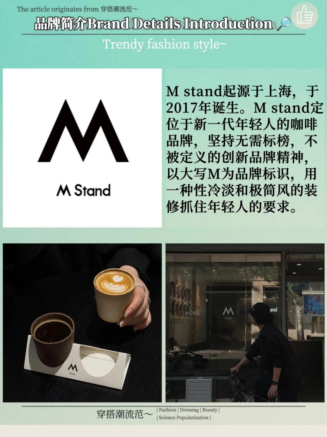 M stand起源于上海,于2017年诞生。M stand定位于新一代年轻人的咖啡品牌,坚持无需标榜,不被定义的创新品牌精神,以大写M为品牌标识