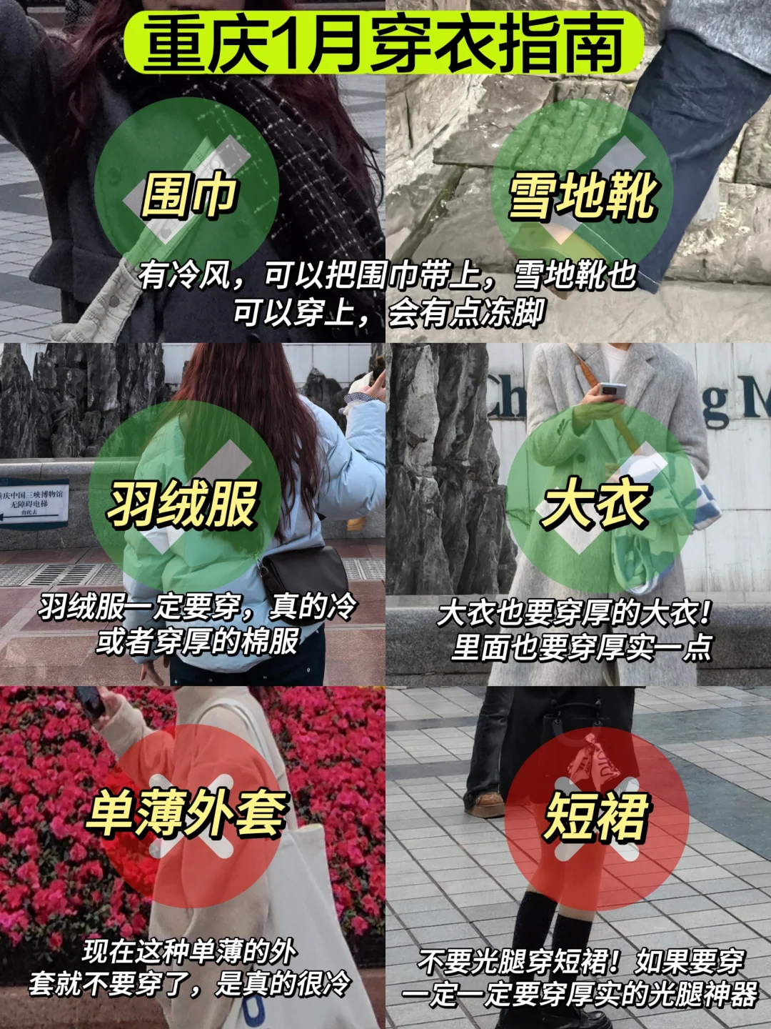 重庆入冬之后还是蛮冷的,近期到重庆玩还是不要乱带衣服,不然真的会很冷!!特别是怕冷的记得一定要带好羽绒服,特别特别怕冷的也可以带上暖宝宝、围巾、帽子这些防寒的东西!