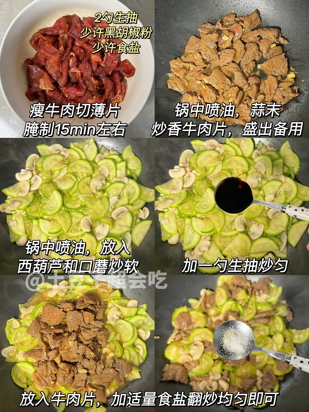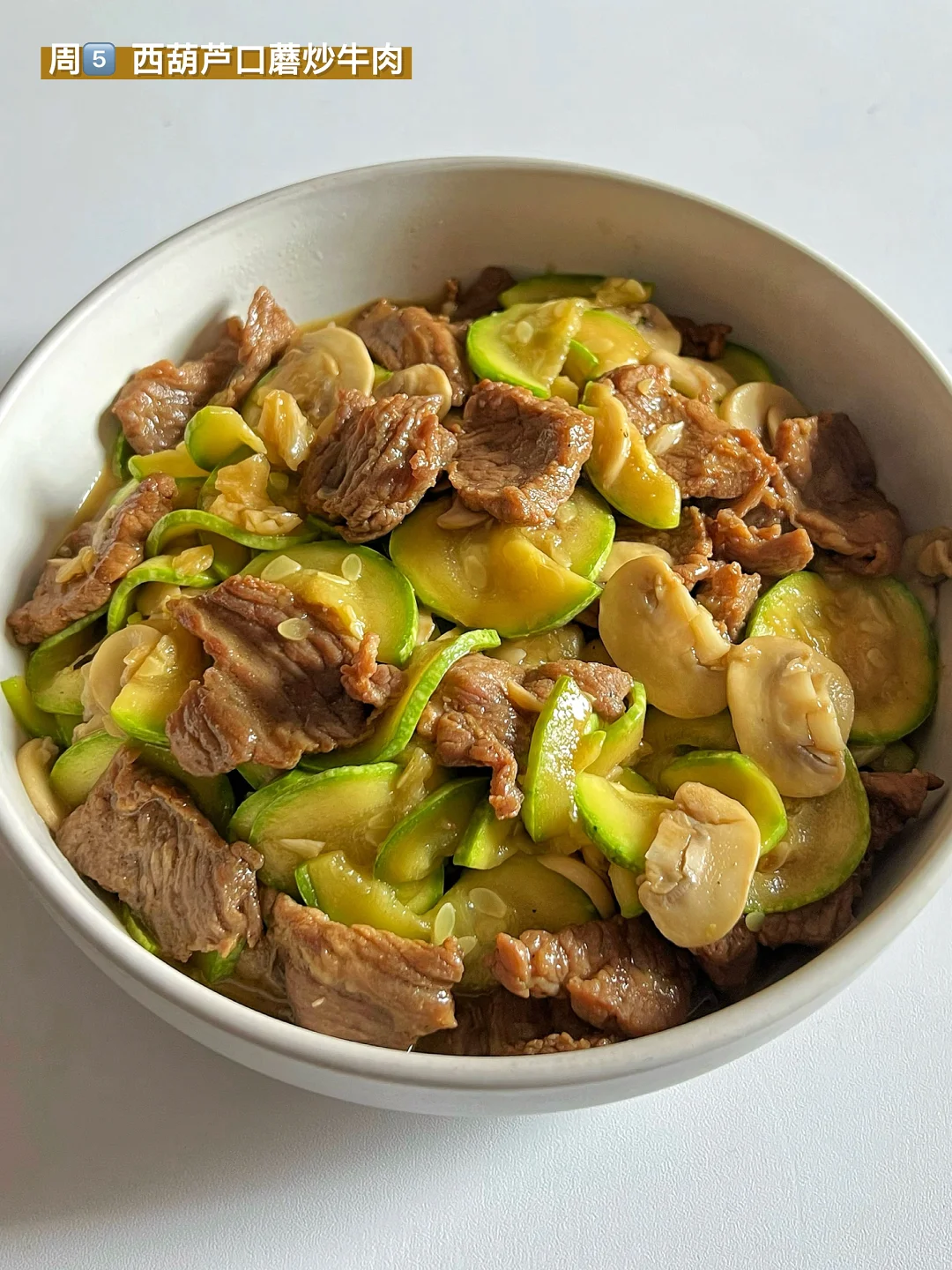 5️⃣ 西葫芦口蘑炒牛肉🥩