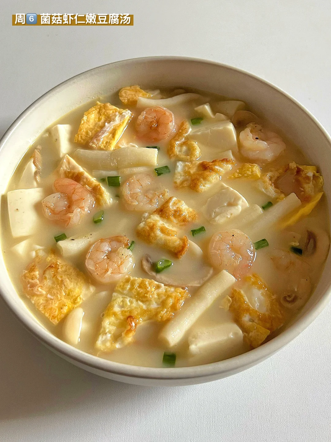 6️⃣ 菌菇虾仁嫩豆腐汤🍤