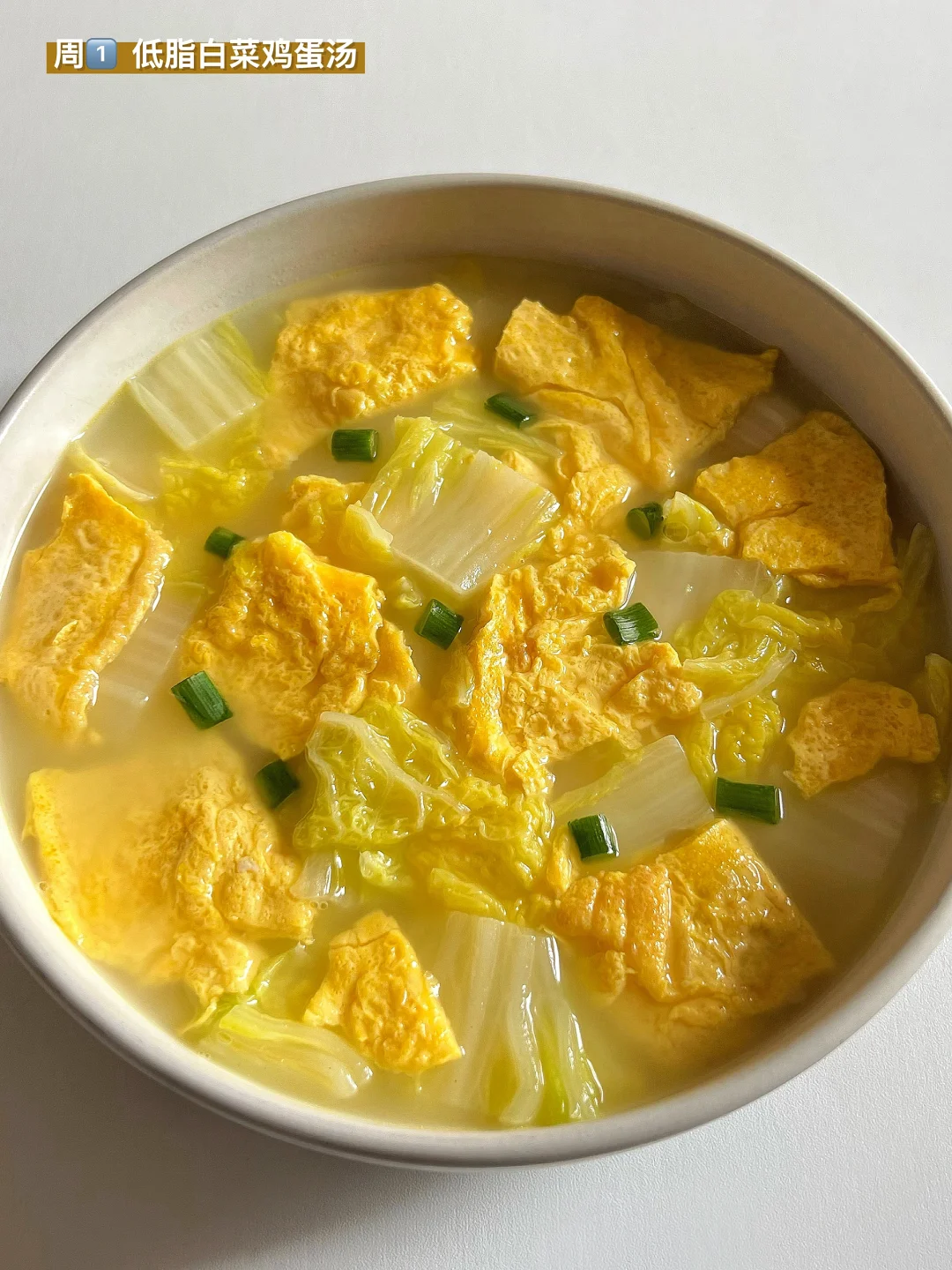 1️⃣ 低脂白菜鸡蛋汤🥣