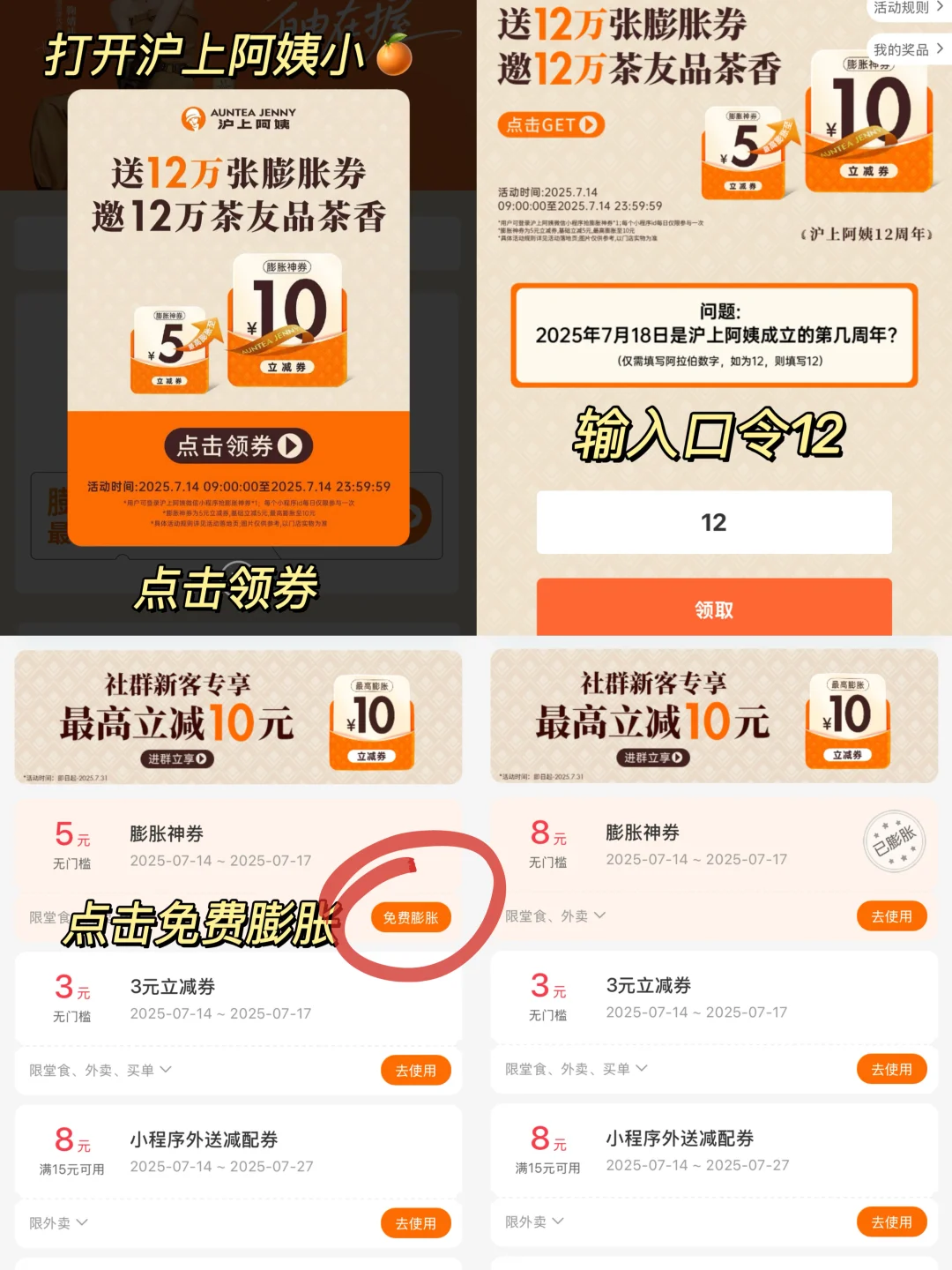 婶子你可不可以天天过生日🎂! 夏日限定话梅柠檬水用膨胀⭕️坠低0r喝啊!!这波羊毛必薅!! 咸鲜的广式话梅搭配新鲜香水柠檬🍋‍🟩咸酸口感越喝越上头!不愧是我的夏日白月光~一天喝三杯都喝不腻!!! ❗️而且7月沪上阿姨🍊每周一都能🆓膨胀⭕️ (7.21和7.28的口令记得来蹲!) 单张基础立减5r 坠高膨胀至10r!! 这不就🆓喝话梅柠檬水了!! 还有其他生日月福利!! 7.18-7.20 :4.9r🛒3张膨胀⭕️,7.18🛒12张膨胀⭕️ 其他时间  :4.9r🛒2张膨胀⭕️,9.9🛒5张膨胀⭕️ 最高能省120r!!!就是说7月的🧋都被婶子承包了!!