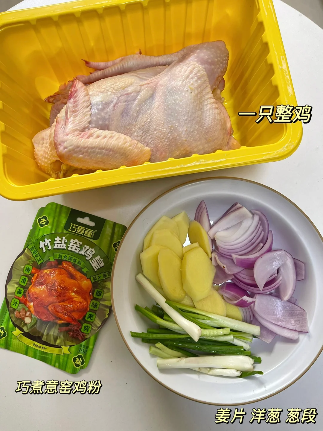 啊啊啊在家里就可以成功复刻窑鸡!! 再也不用点外卖了! 做法还巨简单 只需要腌制一下 扔进电饭煲就ok啦 懒人真的太太太爱了!! 又鲜又香又多汁!咸香浓郁 肉质巨紧实 没有过多的调料 低卡低热量 放心炫! 食材:一只鸡 巧煮意窑鸡粉 葱姜 洋葱 做法: 鸡清洗干净 用开水烫一下 少许洋葱➕生姜➕窑鸡粉➕老抽 腌制半小时入味 电饭煲煮饭模式50分钟就搞定啦 超懒人快手的一道菜!厨房小白也可以轻松get☑️