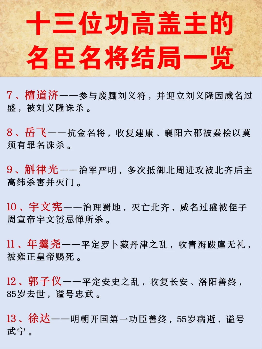 🤴从古至今呀,皇帝登基之后,身边总会有一些曾经大力支持、功高盖主的功臣,可他们的结局往往惨不忍睹! 🍃俗话说:“飞鸟没了,良弓就被藏起来;狡兔死了,走狗就被煮了吃。” 所以说,大多数历代皇帝那可都是心狠手辣的主儿。 🍃比如说汉朝开国的大功臣韩信,清朝战功卓著的大将军年羹尧,还有唐朝操劳了一辈子的长孙无忌,全都是 “狡兔死,走狗烹” 的悲催下场。