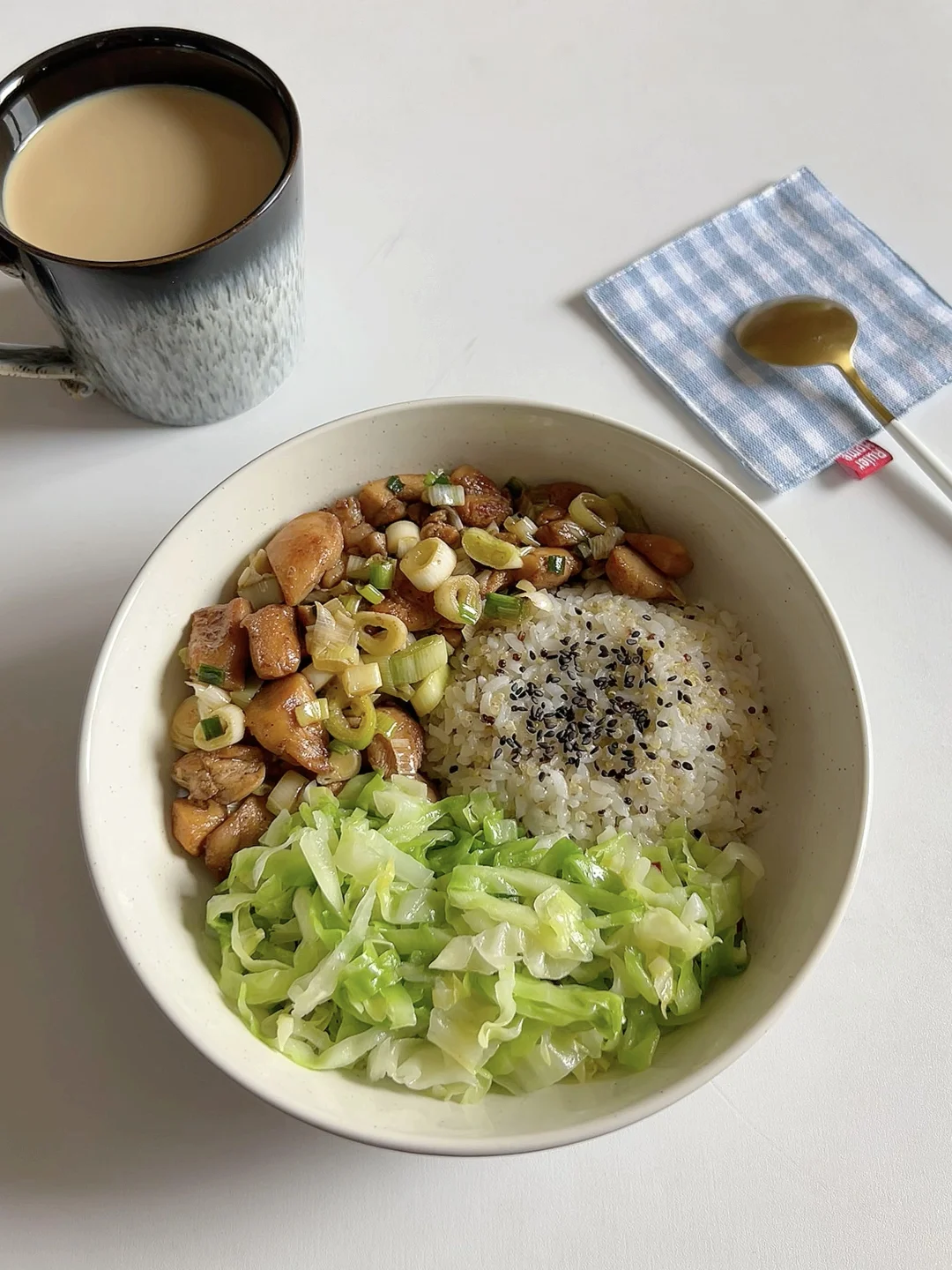 我称之为葱烧鸡腿➕包菜丝拌饭