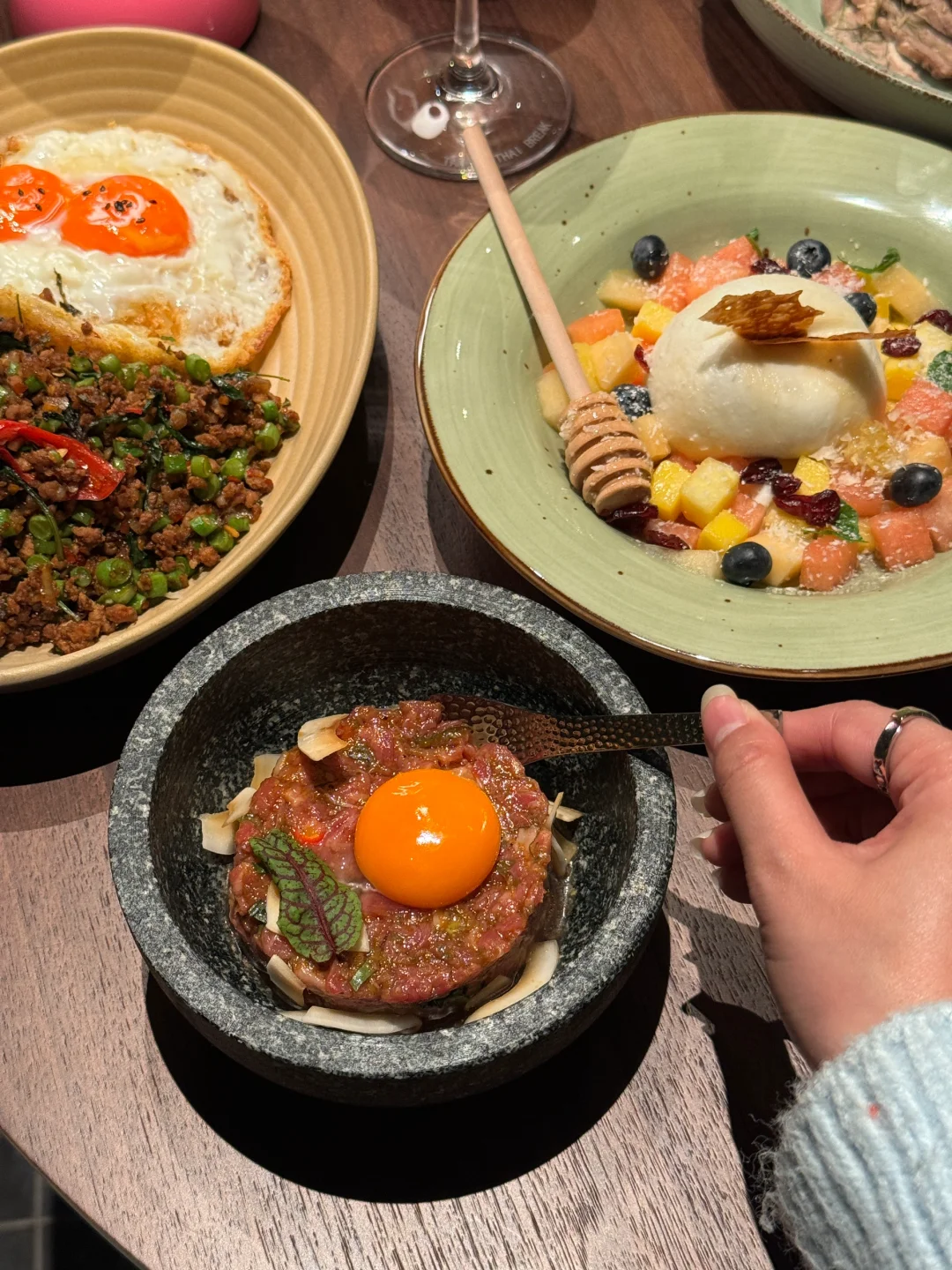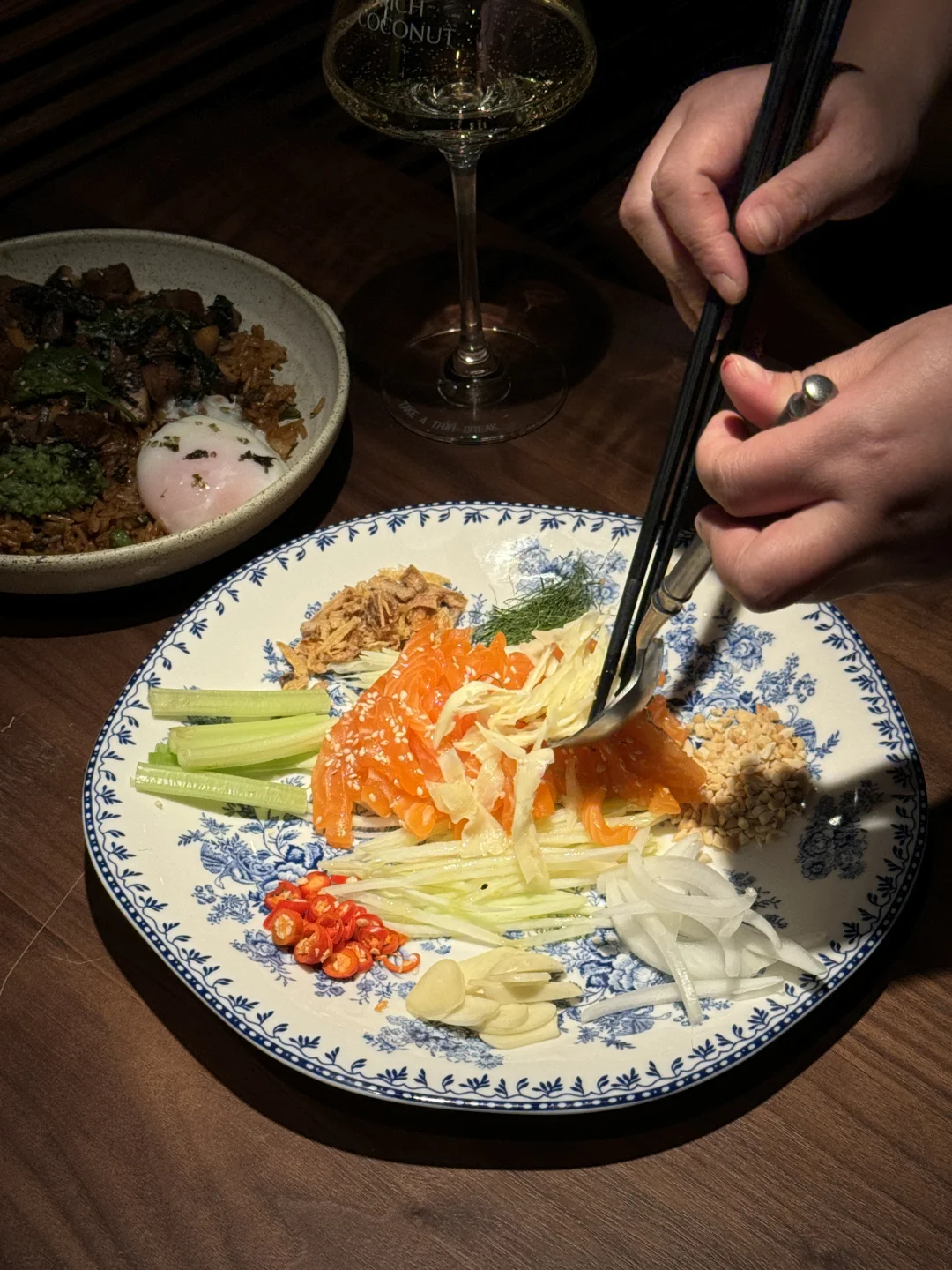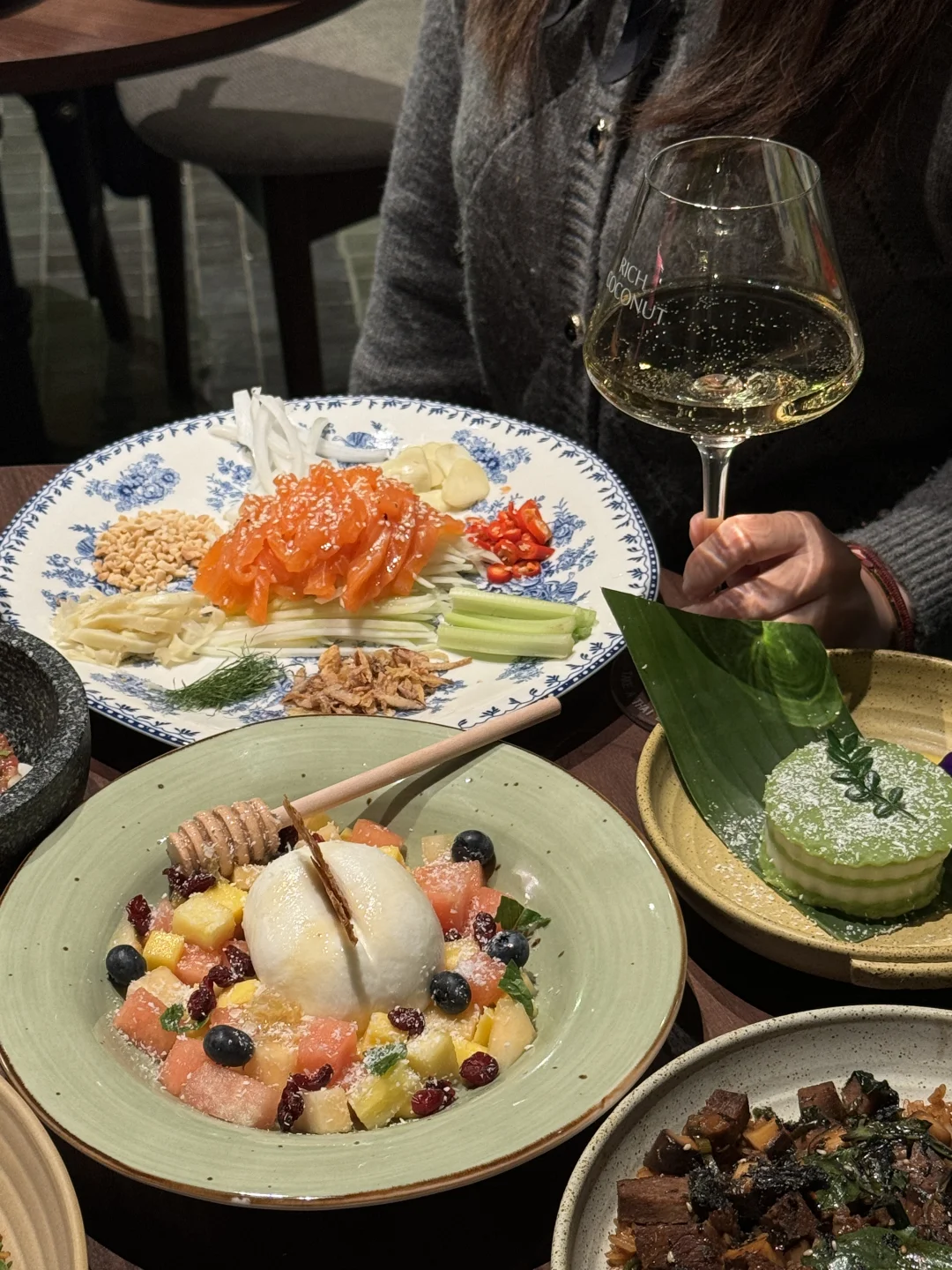 杭州万象城年底开了一个王炸!!!! 魔都东南亚☝️的Thai Bistro终于开了!! 氛围感十足还有很多好吃的漂亮饭~ 整整上百款酒品!杭州的小酒鬼们有福啦~ 音乐也超好听🎵喝着酒忍不住跟着摇起来hhh 位置就在阿嬷手作杭州首店隔壁!!! 趁着刚开业人少,快冲🐛🐛🐛!!! 点了满满一桌!真的都好吃!! 泰式冬阴功汤🦐泰式牛舌水波蛋饭、打抛猪肉饭🍚泰式捞三文鱼🍣牛肉塔塔都很好吃!都不是预制菜!!菜品真的很不错!推荐!