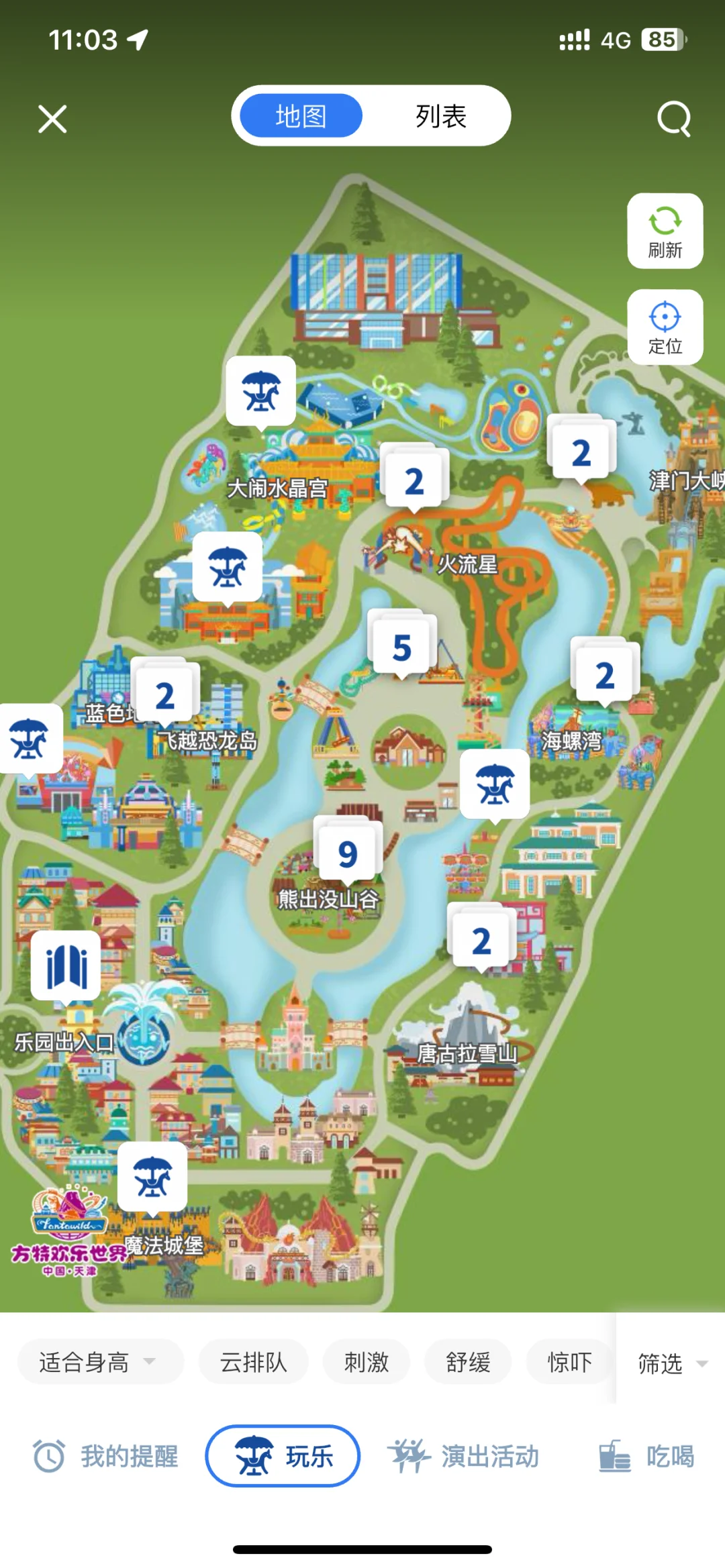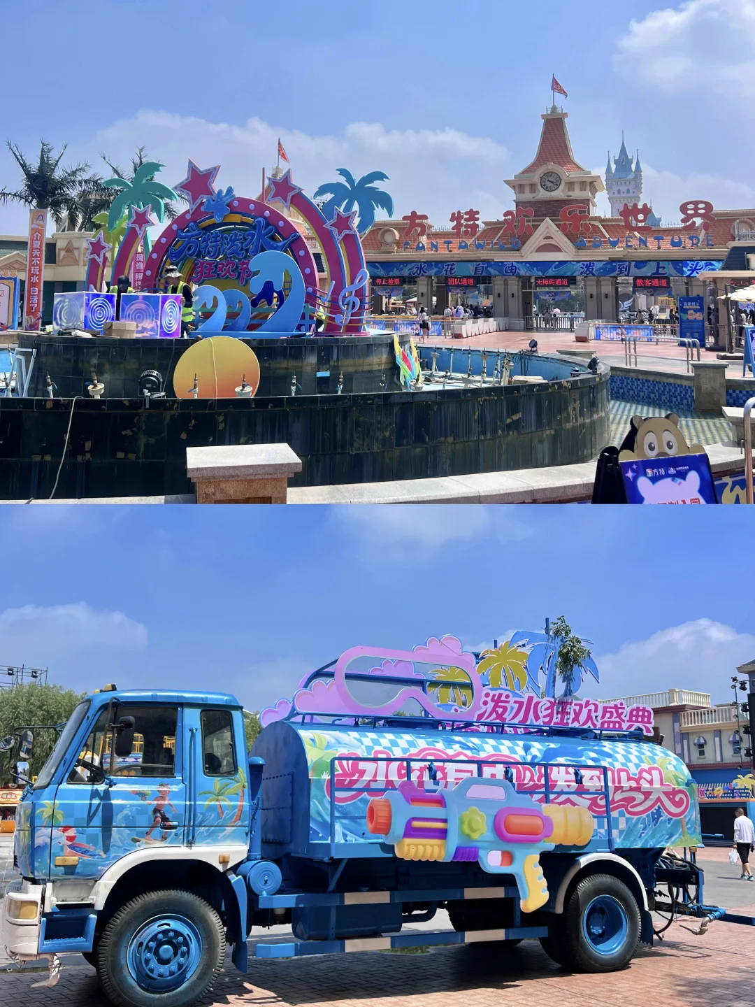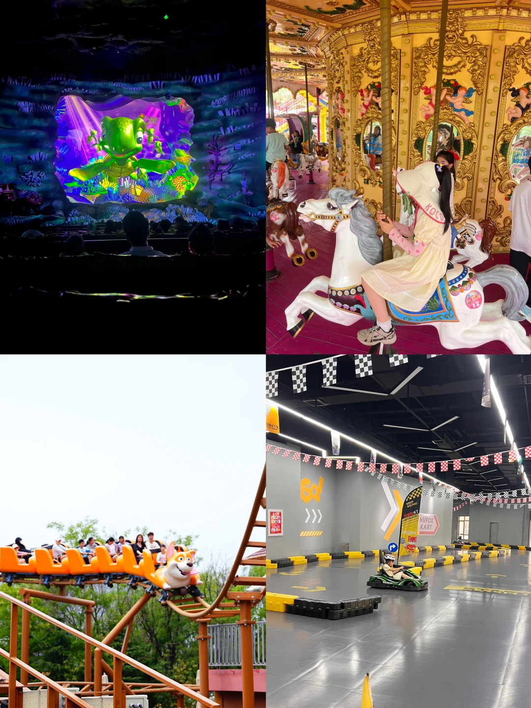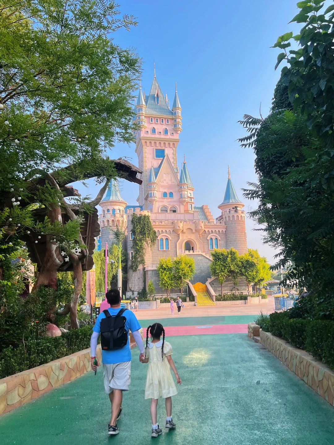 上周五带月亮去了一趟方特玩,错开周末玩太开心啦🥳 🚄:北京南出发1h到天津滨海站,离乐园半个小时距离,更方便一些 🏠:乐园附近的酒店,大概3公里,还挺方便的 早上7点出发,10点多到达方特乐园,直接门口的右手边可以寄存行李哈,然后刷身份证入园,没怎么排队就进去了✌️ 我们第一站:柯基跑跑车,月亮超级喜欢,坐了几次,排队还有遮阳 第二站:双层旋转木马,我们当天楼上没有开 第三站:海螺湾,3D电影,海底生物,期间椅子上会有按摩滚动,月亮被吓了一跳🥹,但是整体还是不错的 第四站:熊出没山谷,里面设施挺丰富的,人少几乎不用排队!很多低幼项目,月亮全部玩了好多次! 第五站:津门大峡谷,这个不怕高的可以玩一下激流勇进,需要准备好衣服雨衣,一路上都有恐龙,喜欢恐龙的小朋友可以去看看 第六站:下午16:00点~20:00有园区打造的11周年“泼水狂欢盛典”,直接把夏日氛围拉满!!时间是6.28~8.31日,暑假带娃来玩啦,园区里还提供了泼水工具,超级多小朋友加入水🔫大战~他们还有泼水巡游战车助力,玩的大人小孩还可以加入他们组织的趣味战队,要准备好衣服更换哈,很可惜我们没有赶上他们泡泡派对,月亮跑去开卡丁车了,39r4分钟,主要是娃喜欢🤓 第七站:下午六点半的巡游演出,在牛仔马场的位置,因为是他们的泼水狂欢节,所以巡游的全部都是热带风情主题,跟我们游客互动被喷水好多次,大家氛围也很好,开心🥳 最后就是晚上20:00我们直接在城堡的中间,有演出和互动,整体感觉还挺不错的,最后20:45分就是烟花时刻,这个烟花真的是视觉盛宴!!全程都很漂亮,还加上超美的荧光水雾焰火秀!!还有演出,闺女看的特别认真,还跟着一起跳!!很值得期待 园区里室内外还有好几个项目和娱乐设施:海盗船、过山车、大摆锤等等我们还没刷,这次一家三口又开心又累的一天,下次还要再来继续刷!!!
