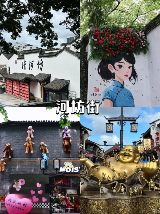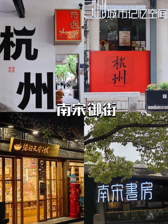 4️⃣河坊街&南宋御街:从古风市集逛到文艺小店,“杭州”大字墙、满墙泰迪熊、猫的天空之城书店…文艺打卡点很多