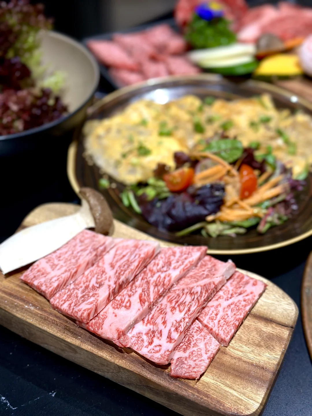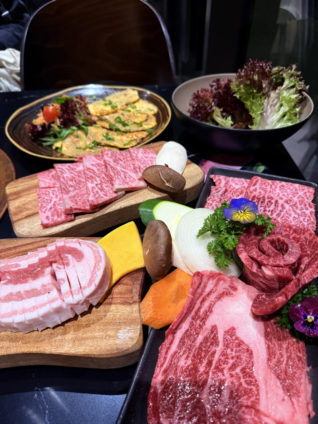 🤸🏿♂️两个运动员点了premium的牛肉套餐,包含了牛很多部位,可以吃到不同口感[棒R] 又单独加了一份A5雪花牛,肉肉都是9+级别的。