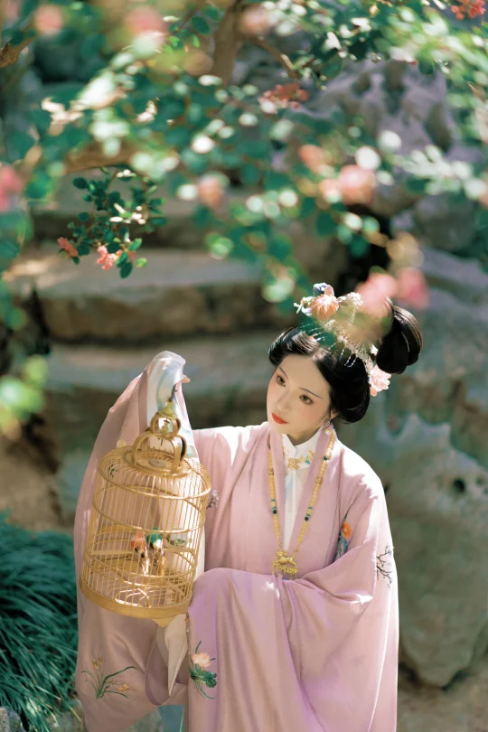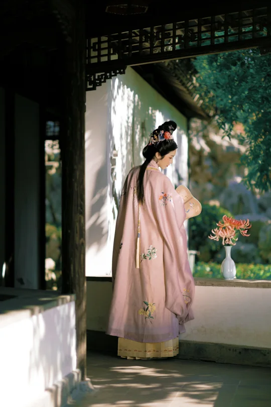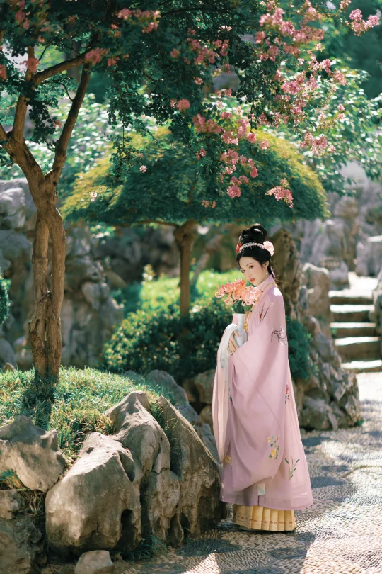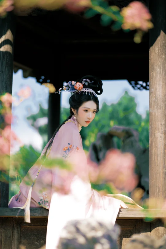 夏末秋至,明制汉服又可以穿起来啦,粉紫色的散花衣特别适合中式园林! 拍摄月