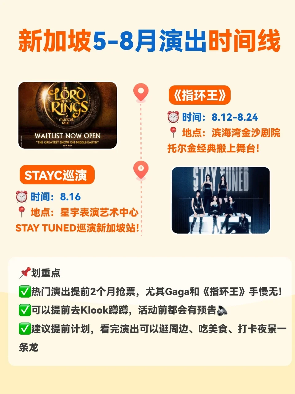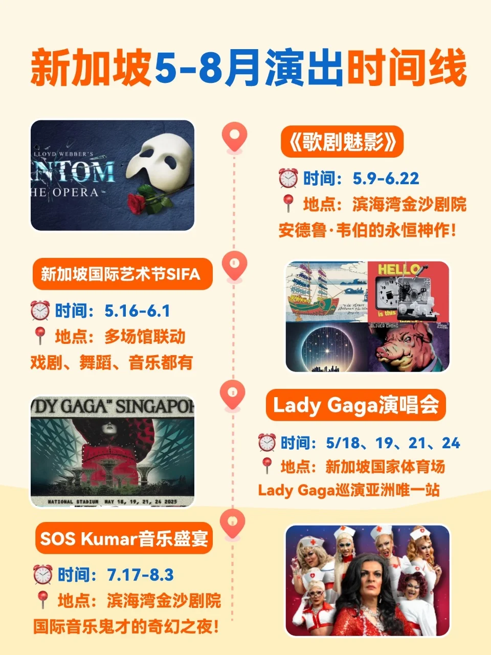 2025年夏天想看演出的宝子必去新加坡哇!小编吐血整理了一份5-8月必看演出清单,音乐剧、演唱会、奇幻舞台剧全都有,快速速收藏!