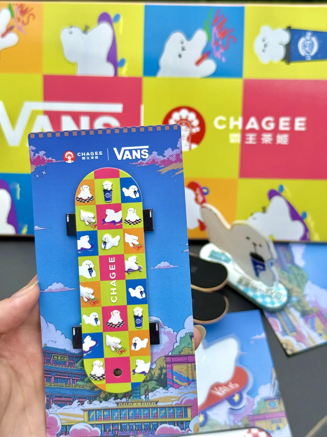 姐妹们!我挖到宝了!谁能想到霸王茶姬和VANS联动了啊啊啊!😍 拿到手那一刻我就疯了!板面是霸王茶姬经典的配色加上VANS大logo,街头感一下就来了,绝绝子!直接带着它去Citywalk啦 打卡点是ifs(LG1外面) 带着这个滑板,拍照神器有了,摆造型的道具也有啦!(发朋友圈被狂问链接....) 👟 不光有真滑板🛹,这次有超可爱的限定冰箱贴和小滑板玩具(拿在手上都舍不得放🥹好可爱) 这次真的得冲啊啊啊啊🥹🥹