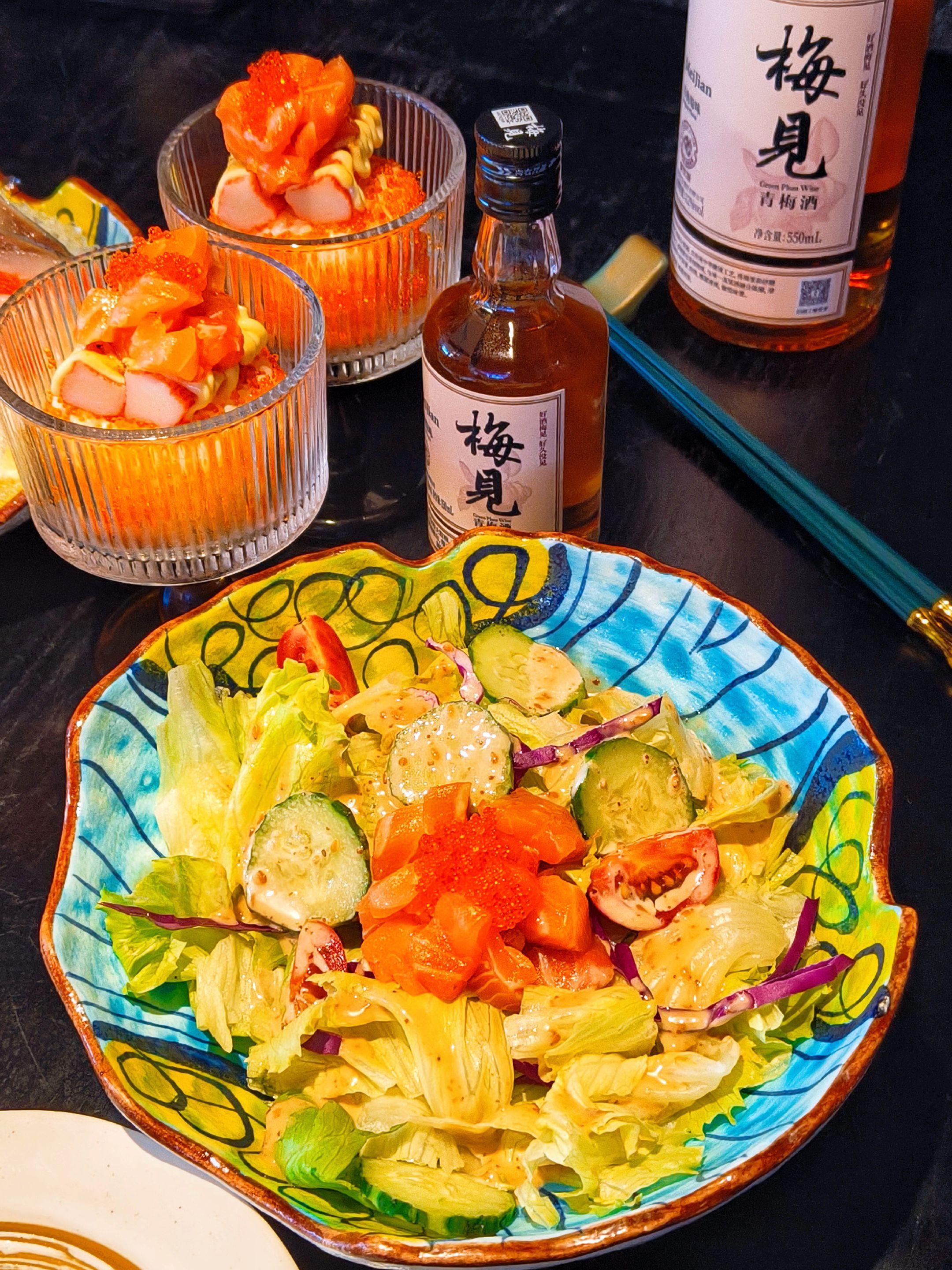 梅见联名日料~人均60+小酌微醺气氛刚好。梅见联名日料~人均60+小酌微醺气氛刚好! 下班啦,今天很想跟闺蜜小酌微醺一下,来!广州叁纹渔×梅见联名套餐太值了! 人均60+性价比天花板 ✔️刺身拼盘超新鲜🍣 ✔️三文鱼柳亲子饭香糯入味 ✔️寿司+小食+沙拉道道精彩 ✔️三文鱼骨酥脆香口! ⭕醉惊喜的是附赠一瓶150ml梅见酒🍶!淡淡梅香清甜顺口,微醺不醉超开心,也许女孩子都喜欢,闺蜜小聚冲!💫