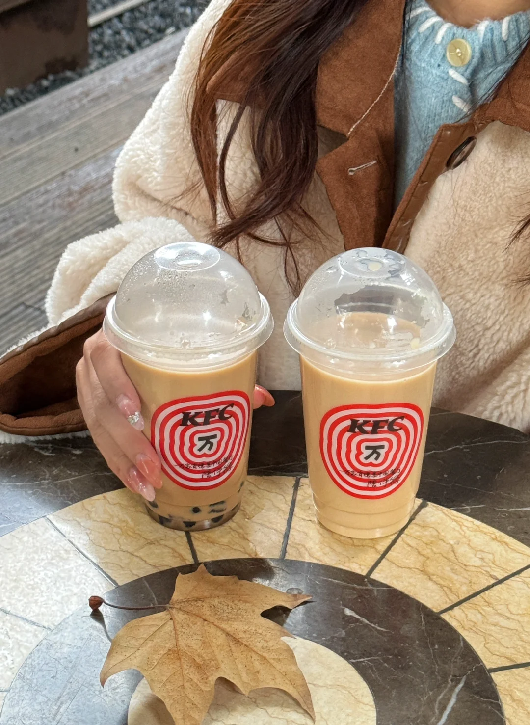 落地成都,没想到这里是速冻模式啊! 我太太太需要一杯热饮了 9.9毫不犹豫拿下肯德基黑糖珍珠轻乳茶 慢熬黑糖➕原叶茶底➕新西兰进口奶 还有糯叽叽的珍珠!! 热乎乎的太治愈了 朋友点的是九龙金玉轻乳茶 表示意外好喝 在成都的东郊记忆 又荒废了快乐的一个下午~