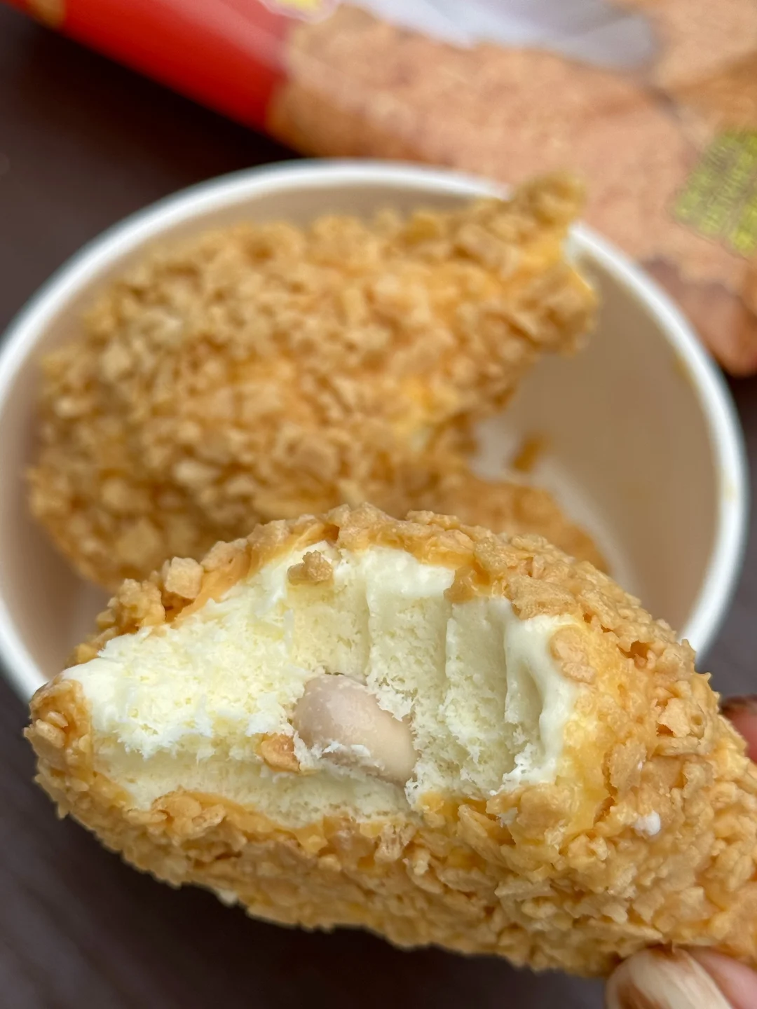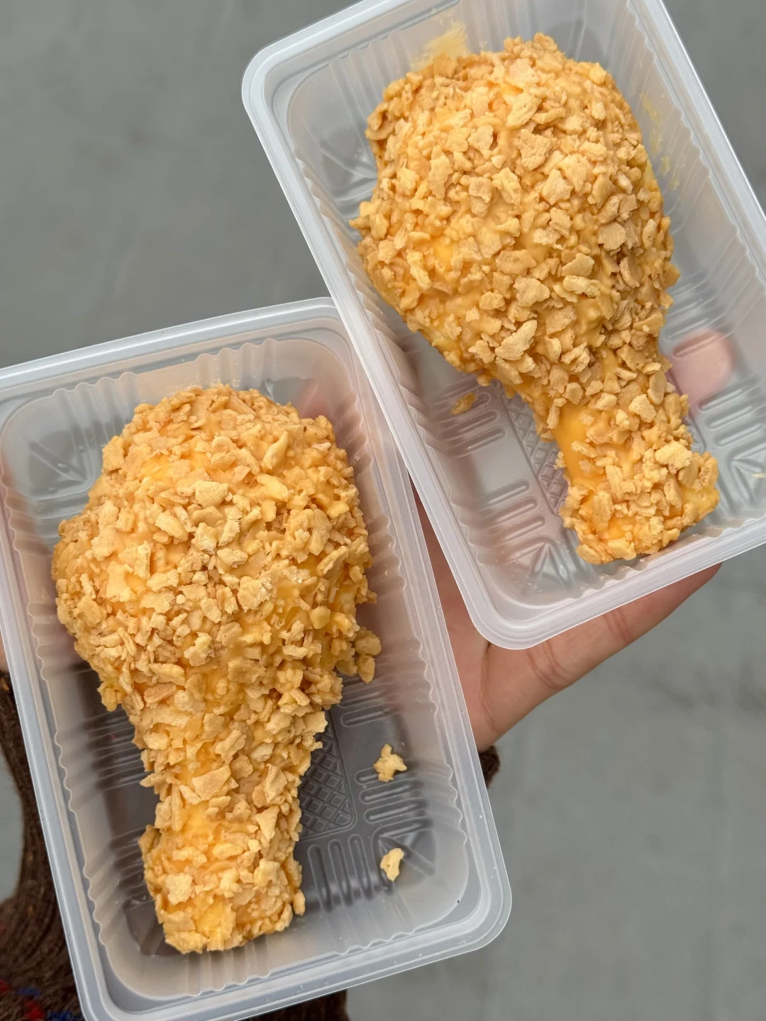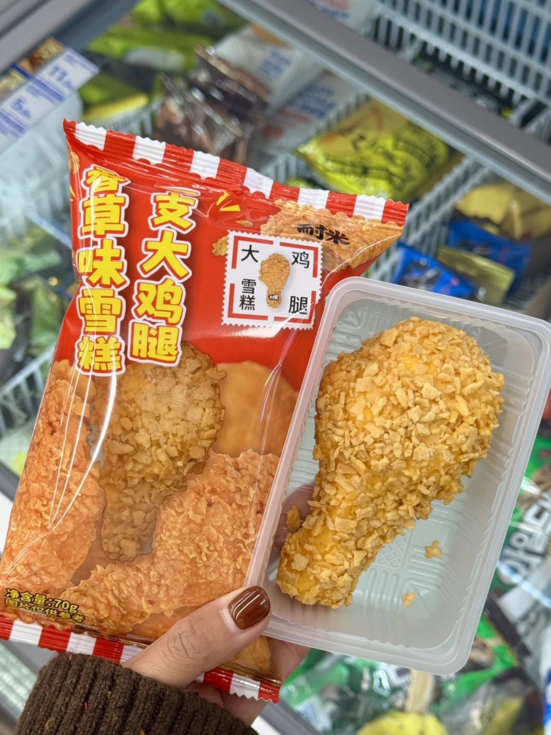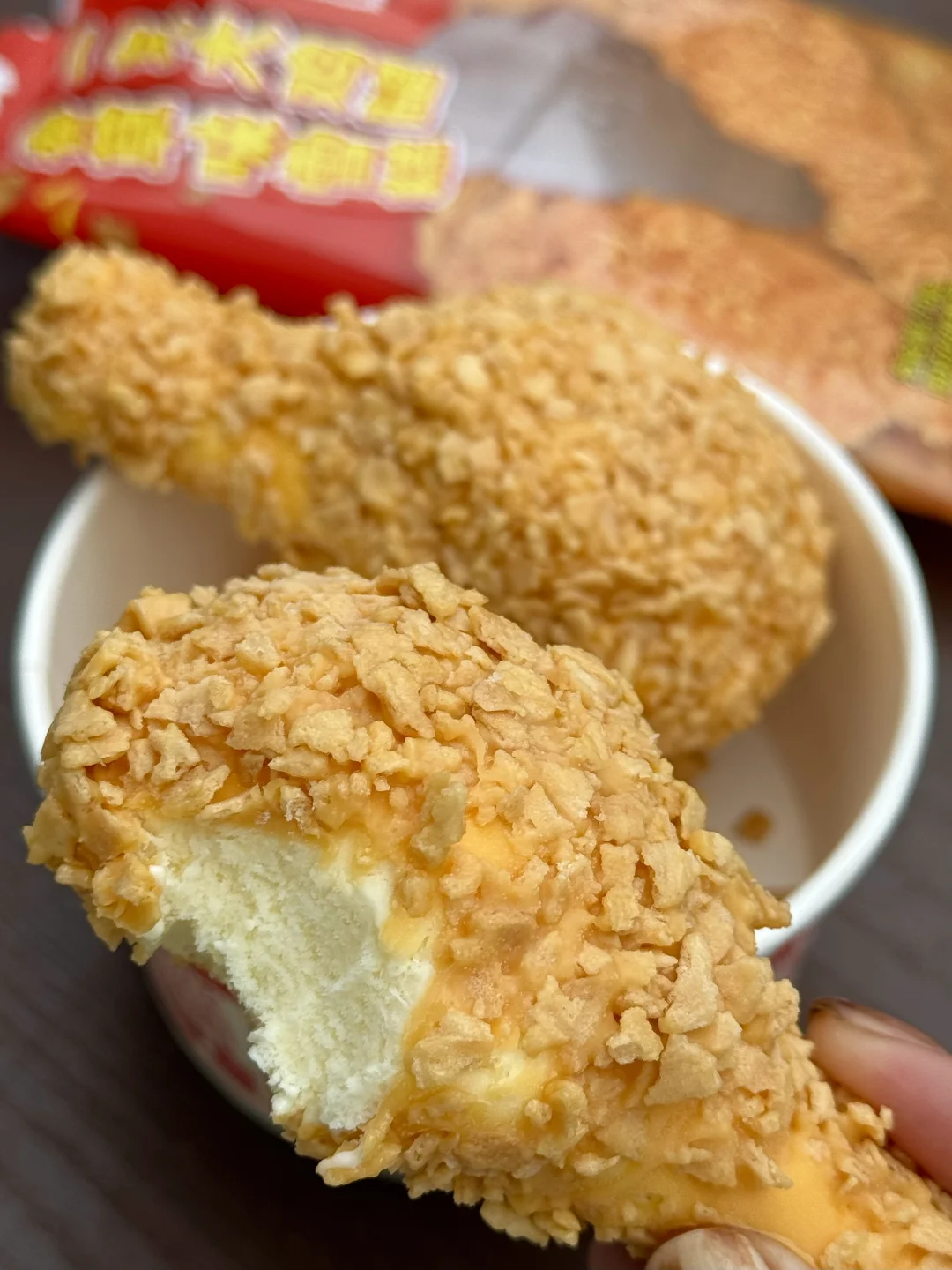 vocal!!!鸡腿冰淇淋🍗!! 外皮是用华夫饼碎🧇包裹的巧克力外壳 一口下去酥脆的口感嘎嘎香! 细腻丝滑的香草味冰淇淋甜滋滋的 咬到里面还有“鸡骨头”🦴是巧克力棒🍫!尊嘟好逼真~