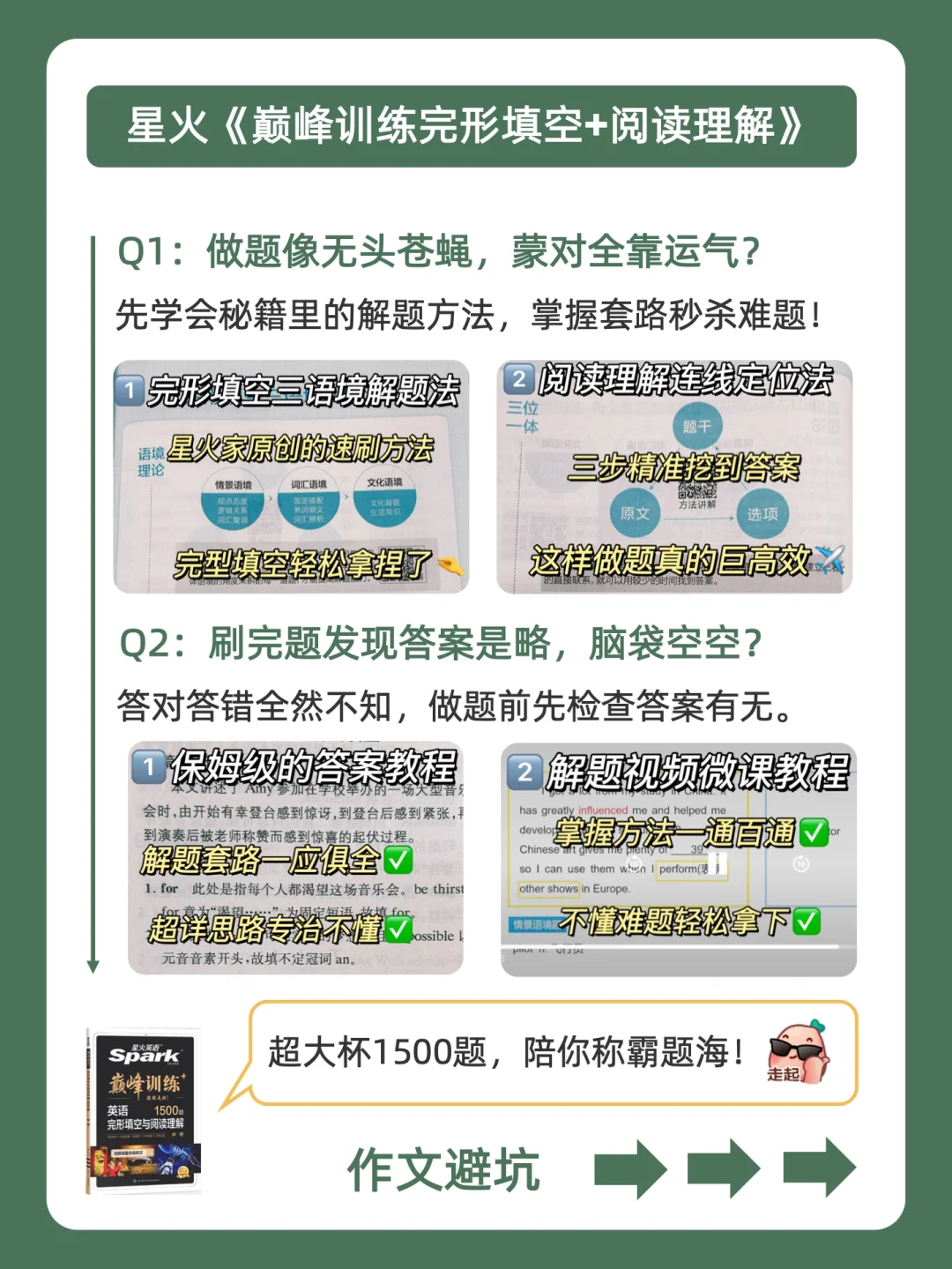 [点赞R]搭配一本英语秘籍:星火英语《巅峰训练英语完形填空与阅读理解》,两大解题方法论+超大量1500题库![派对R]