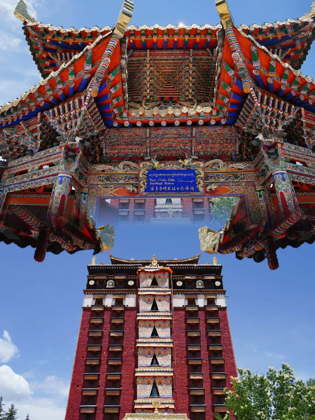 位于甘南自治州合作市的米拉日巴佛阁,全称是安多合作米拉日巴九层佛阁,金碧辉煌气势恢宏。是一座融合藏族堡式建筑和佛阁式建筑特色的红色藏式高层建筑,外部全部由青色石英石搭砌而成,内部为全部结构,供奉1720尊佛像,各种壁画,彩绘,唐卡,塑像浑然一体,供奉着藏族民众中最富传奇色彩、妇孺皆知的米拉日巴尊者,有“藏学博物馆”之称。