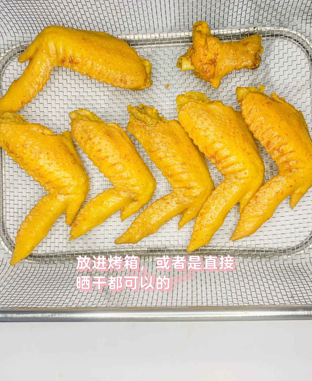 5、倒入鸡翅,煮八分钟,泡十五分钟,出锅后放凉,在倒入自己喜欢的调味品,我放的是烧烤腌制粉,放冰箱腌制一晚,第二天晒干或是烤箱烘烤