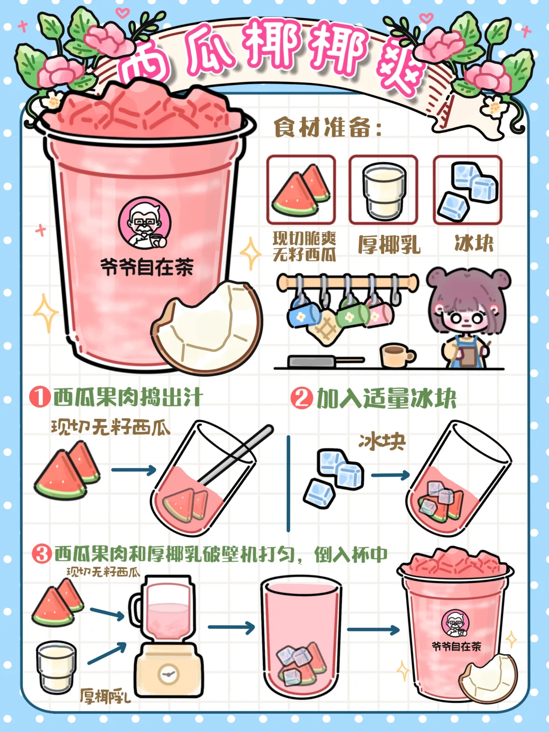 现切脆爽多汁的无籽西瓜🍉与丝滑浓郁的椰浆奶🥥,这样的组合真的不会出错👍