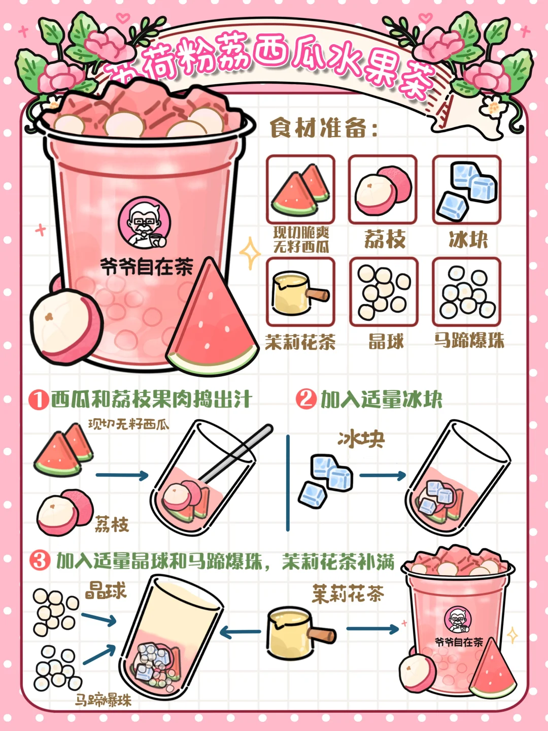 西瓜🍉的脆爽搭配荔枝肉的香甜,弥漫着茉莉花茶🍵的芬芳,一整个清爽香甜🌸,还有马蹄爆珠带来的奇妙刺激和晶球的咀嚼感,加分项太多已经说不过来了👍