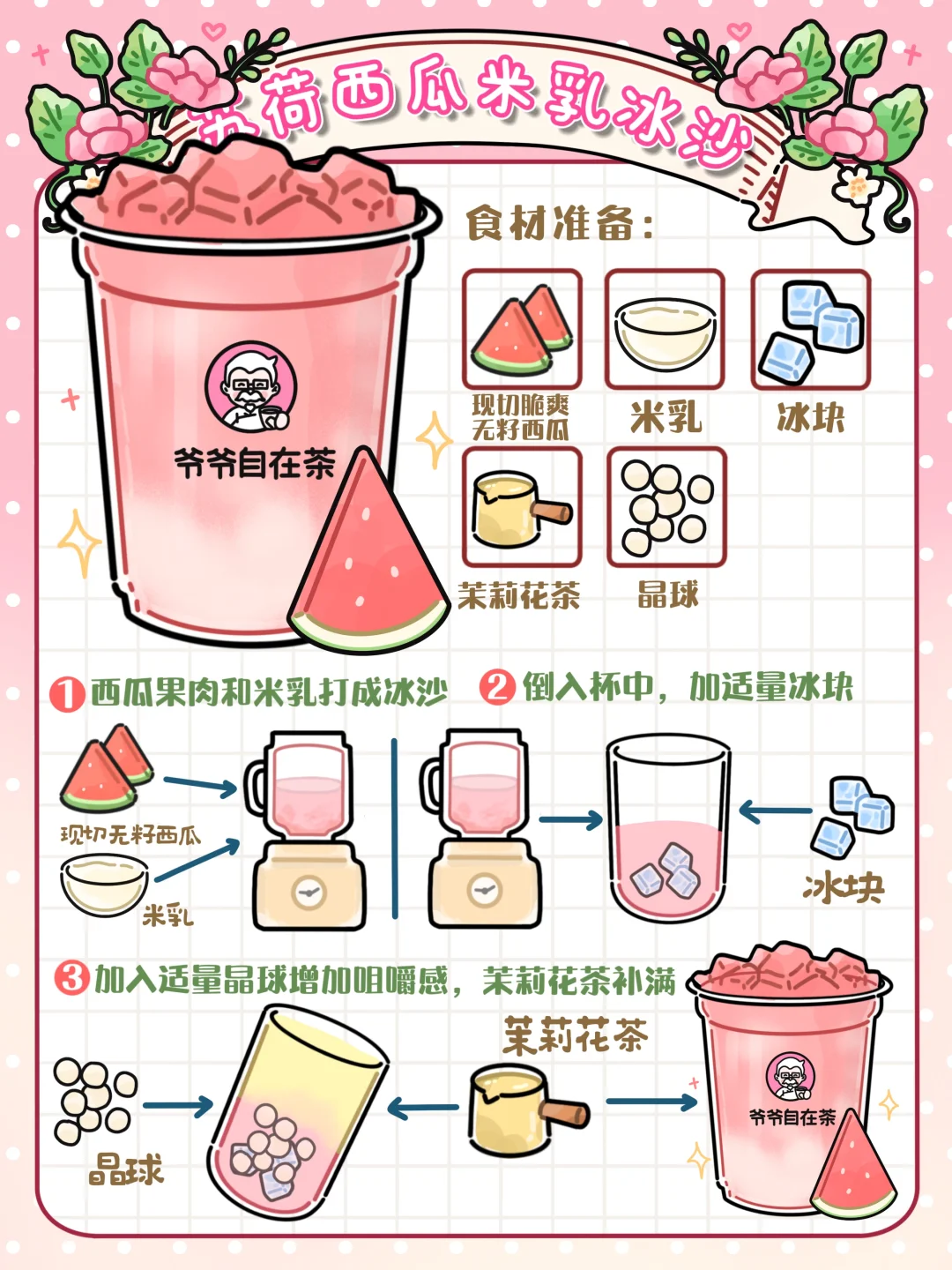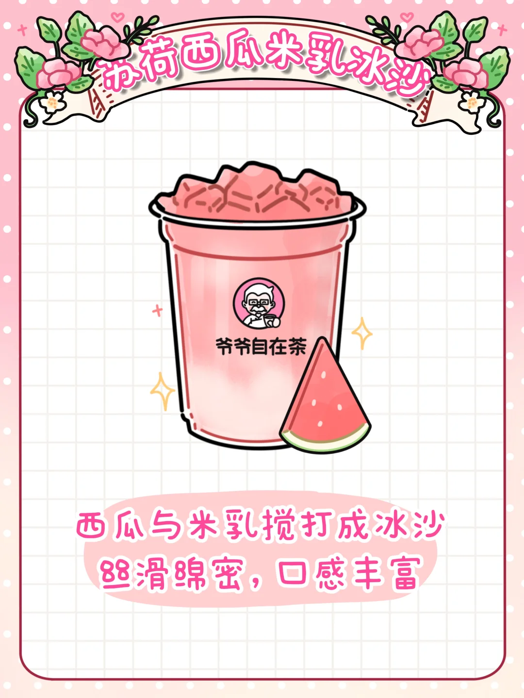 脆爽多汁的无籽西瓜🍉与米乳🍚搅打成冰沙成绵密丝滑的冰沙,再加入灵魂晶球,口感直接up up❗️层次超丰富👍