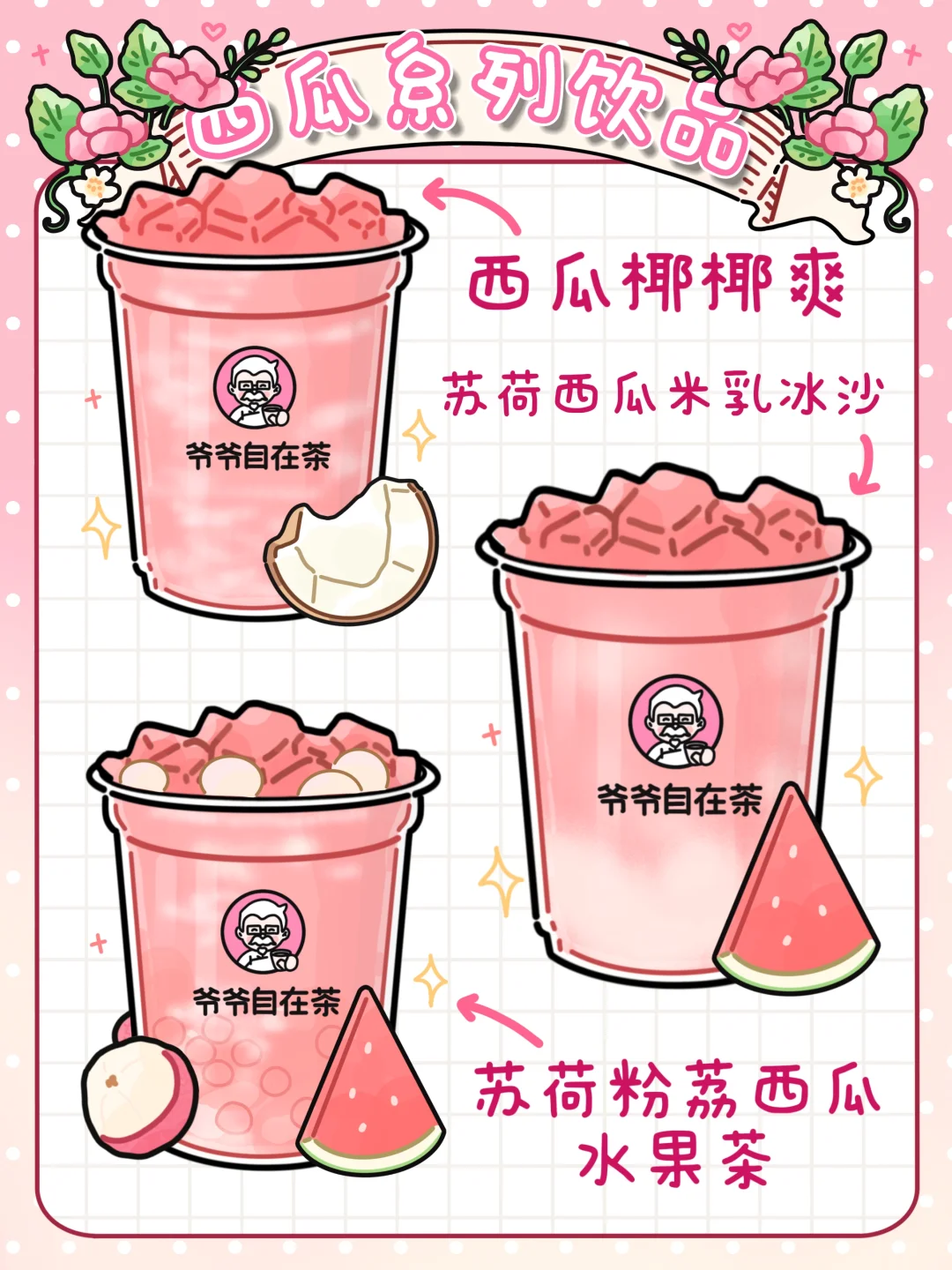 3️⃣ 苏荷粉荔西瓜水果茶🍉