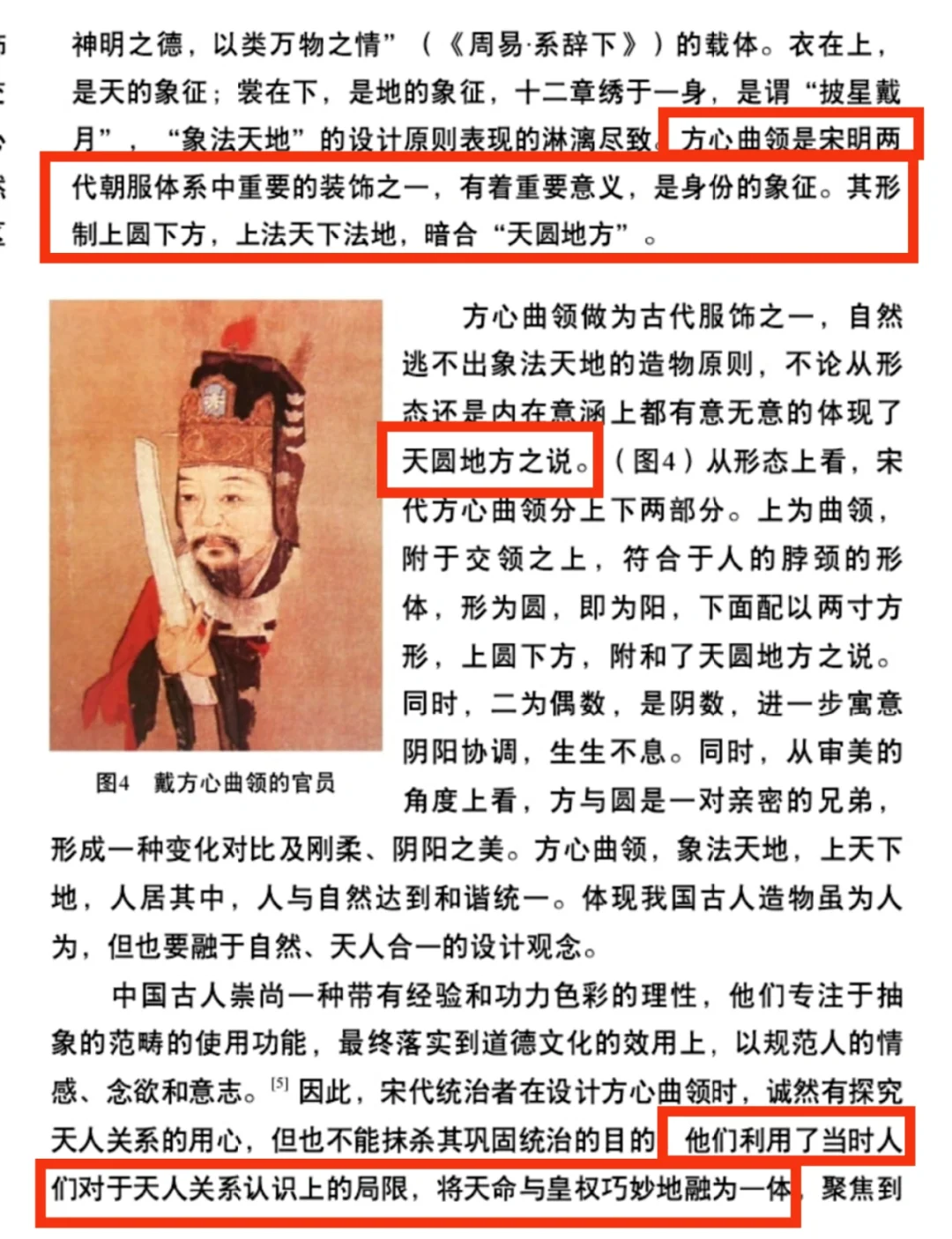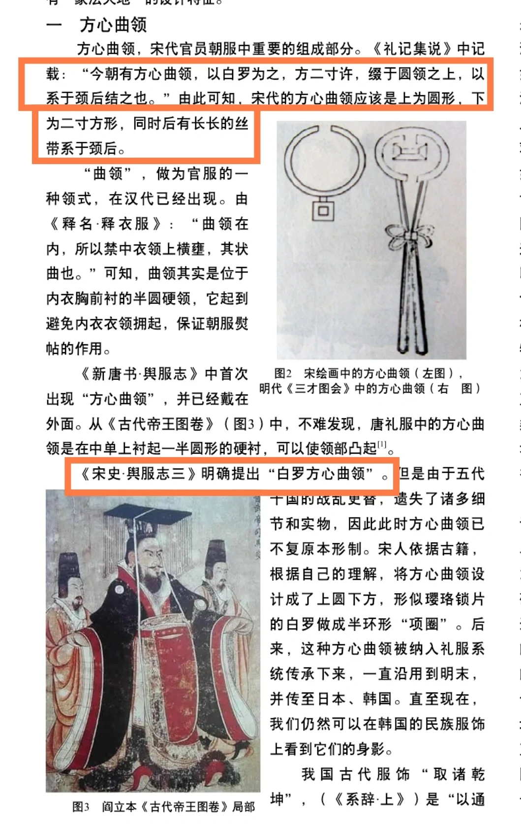 看到剧中一群严肃的大臣和皇帝背后都系着这么一个蝴蝶结,顿时觉得有些可爱! 🌈这个类似项圈一样的东西是方心曲领,是宋明两代朝服中最重要的体系之一。 🌈其形制上圆下方,上法天下法地,暗合“天圆地方”。统治者利用人们对于天人关系认识上的局限,将天命与皇权巧妙地融为一体。 🌈曲领还有一个重要的作用就是避免内衣衣领拥起,保证朝服熨帖。 🌈古人对于服饰穿戴的讲究规矩不是一般的多呀……