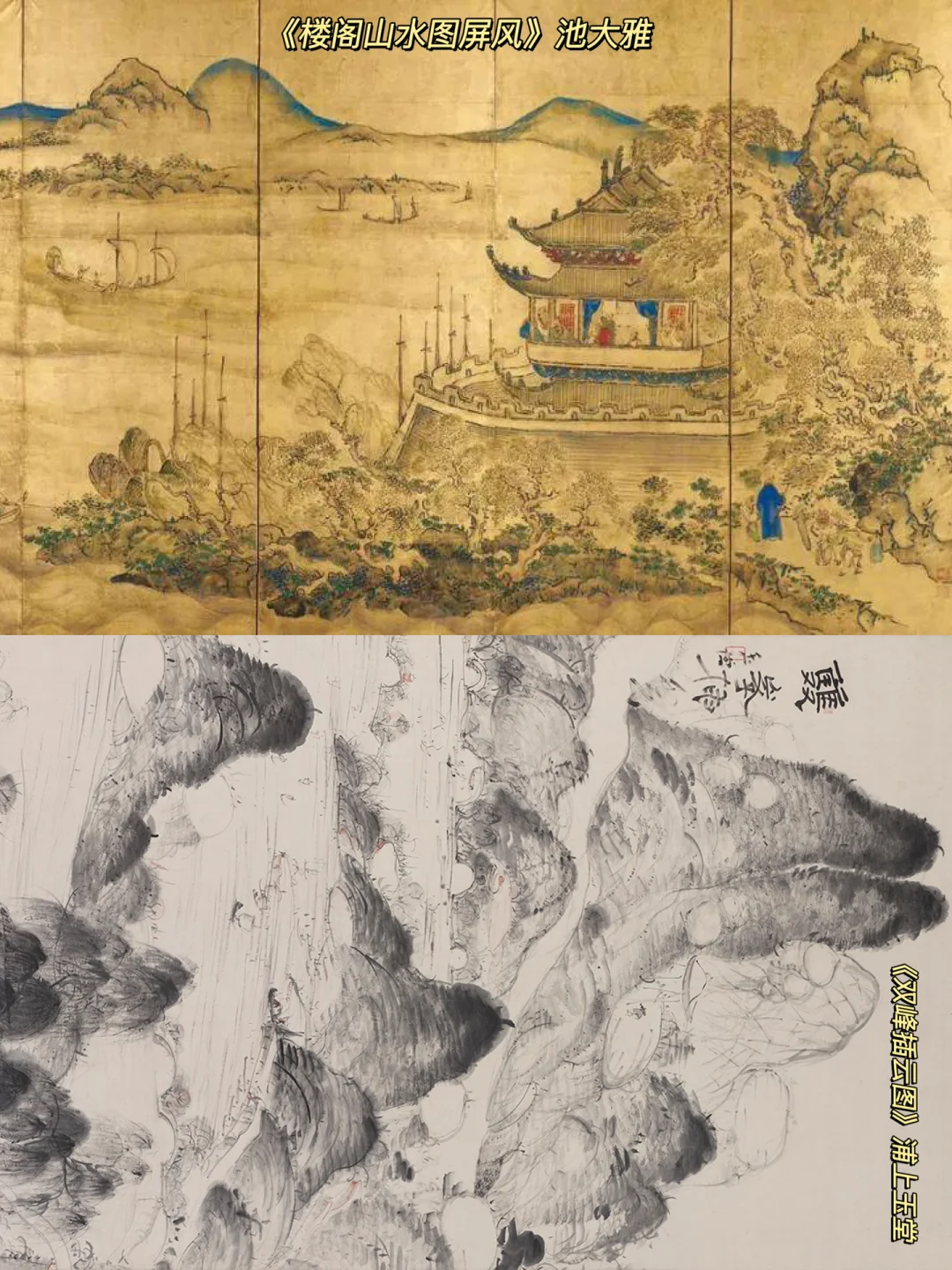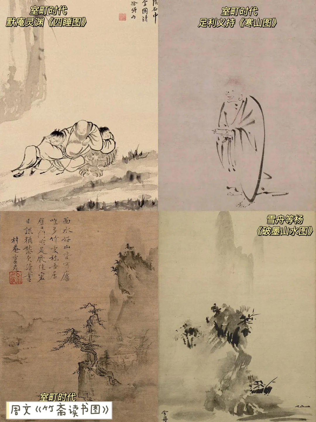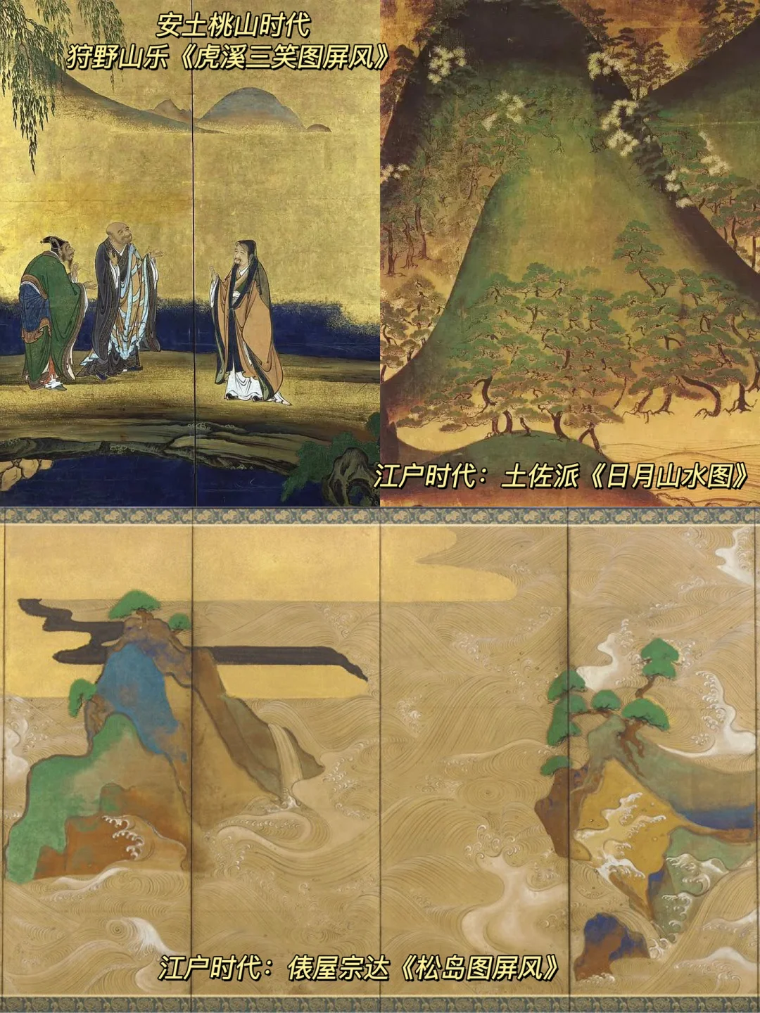 🦋从飞鸟时代到奈良时代,日本深受唐朝影响,正仓院藏品以及当时的寺庙壁画就是鲜明的例子。 🦋到了平安时代,藤原家族修建了彰显权势的凤凰堂,其中门扉上的《早春图》,虽受到青绿山水画影响,但不同于中国的江河壮阔,转而以婉转、细腻与哀物情怀,成为了本土艺术—大和绘的创作巅峰。 🦋这一时期流行的小说叫物语,物语的连环画形式叫绘卷物,分别有女绘、男绘两种类型。最知名的女绘为《源氏物语绘卷》,它采用了引目钩鼻法—由简练的线条呈现面部,人物姿态铺陈剧情—情感表达隐晦而内敛。 最精彩的男绘叫《信贵山缘起绘卷》,它借鉴了南宋绘画方法,笔触多变、线条活泼,人物表情、动作都外放且富有生趣,视觉观感非常漫画。 🦋从镰仓时期开始,中国禅宗传入日本,僧侣肖像画开始发展,兰竹、花鸟等元素被模仿,浓墨渲染、干笔点缀等技法被继承,而日式诗意,从这些融会贯通中,流露出来。 🦋室町幕府对南宋院体画极为痴迷,因此,夏圭、马远等画风备受追捧,如拙、周文、雪周一派、阿弥派皆为这一风格,其中,周文将禅宗水墨发展为“心象山水图”,而雪周将泼墨技法传承于众多弟子。 🦋安土桃山时期,武士阶级兴起了营建古堡,因为窗户小,室内需要更多照明,金箔屏障画开始流行。一直到江户时期,屏障画推动了许多画派诞生,有画风豪迈的狩野派;有水墨着色的汉画派;有四季为景的土佐派;有浪漫华丽的光琳派;还有注重写生的圆山四条派。 🦋在此期间,日本接触到了中国文人画,并以此为基础,形成了颇具本土特色的“南画”。无论是画法简略的池大雅;还是笔墨超绝的浦上玉堂;都为世人留下过精彩作品。 🦋不过以上种种的国际知名度,都比不上接下来介绍的,江户时代浮世绘。 它的题材多样,以此诞生的画家,享誉世界。比如专注美人绘的鸟居清长;耕耘役者绘的东洲斋写乐;传播风景绘的葛饰北斋、歌川广重,以及热爱武士绘的歌川国芳。 🦋明治维新过后,冈仓天心发起日本绘画改革,更多画家受到西方影响,以印象主义、写实主义、浪漫主义等画法描绘本地风土人情。 🦋20世纪,日本画坛变得更为多元,有偏重本土的小林古径;有描绘孩童烂漫的横山大观;有延续浮世绘风格的伊东深水;有采用单一颜色主题的东山魁夷;有将传统与现代结合的奥村土牛,也有受西方抽象画影响的福田平八郎等。