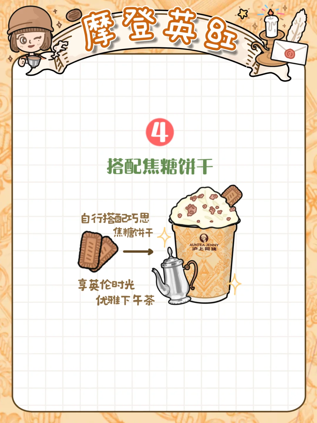 4️⃣可以自行搭配两块焦糖饼干哦~